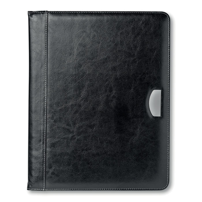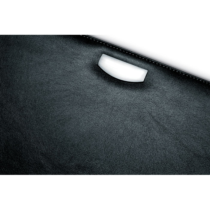 Папка для бумаг формата А4 с металлической пластинкой для логотипа. Включает блокнот на 20 листов