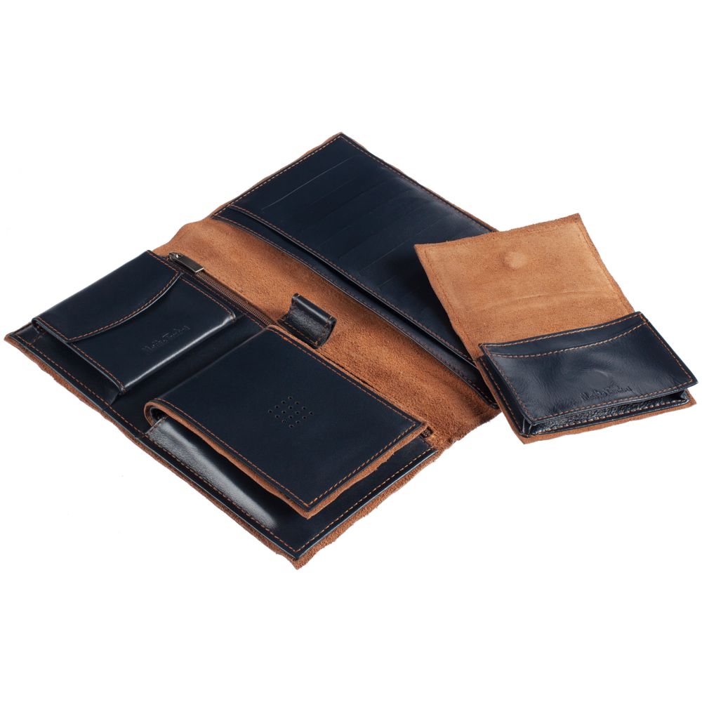 Изделия линейки Palermo изготовлены из гладкой кожи глубокого синего цвета с контрастной отделкой из замши. Оформленные в едином стиле, они легко собираются в подарочные наборы.Все изделия линейки Palermo. Вмещает 17 визиток. Поставляется в чехле и подарочной коробке.