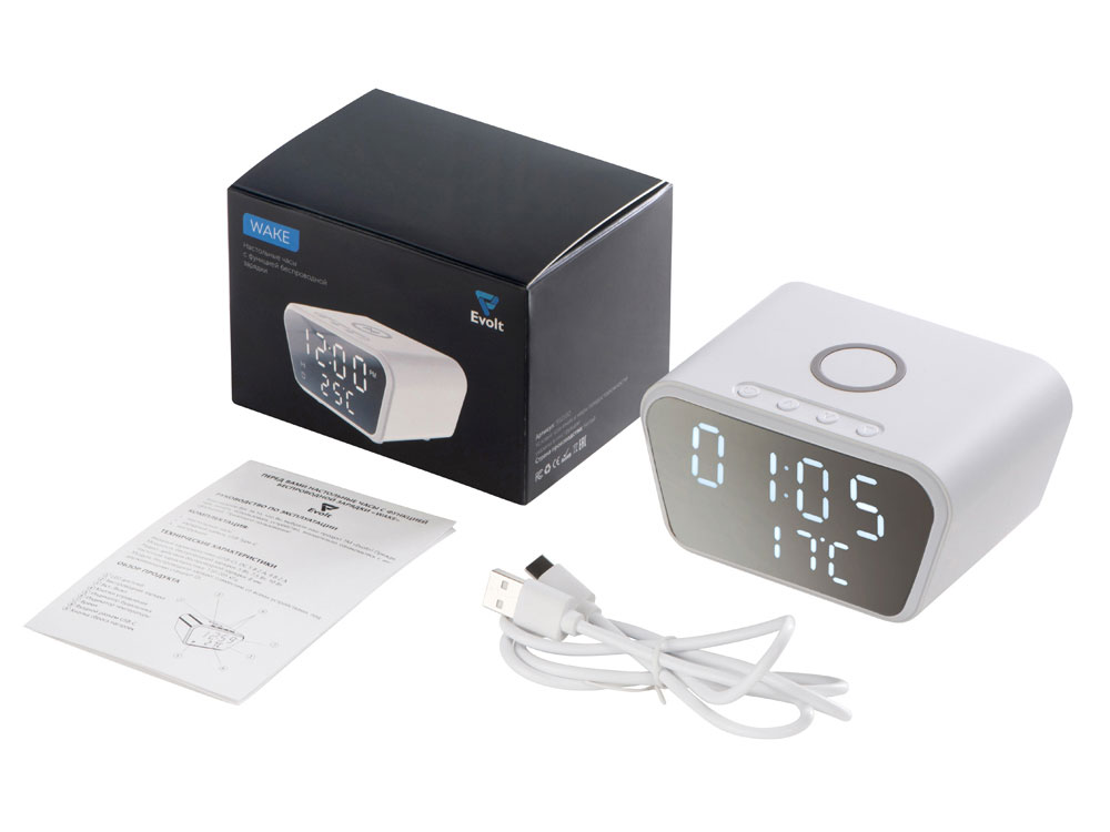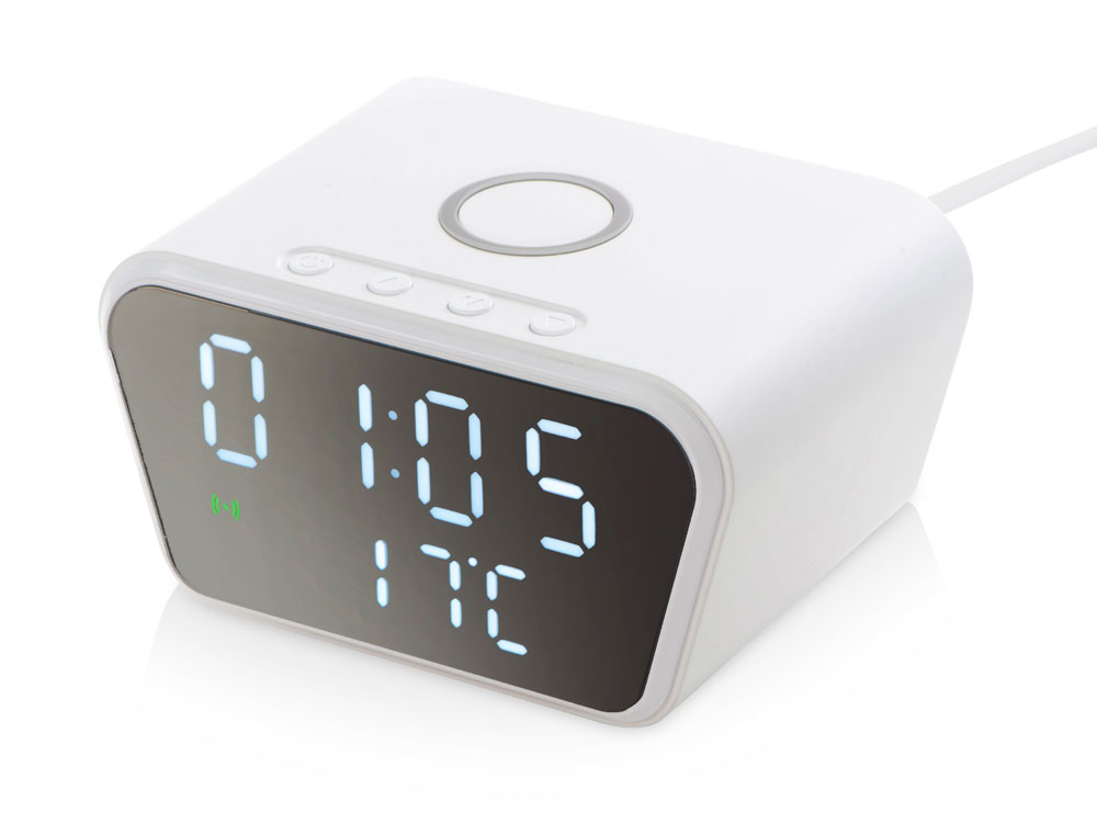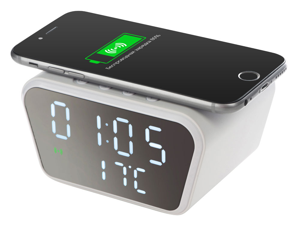 Настольные часы с функцией беспроводной зарядки Wake, 10 Вт