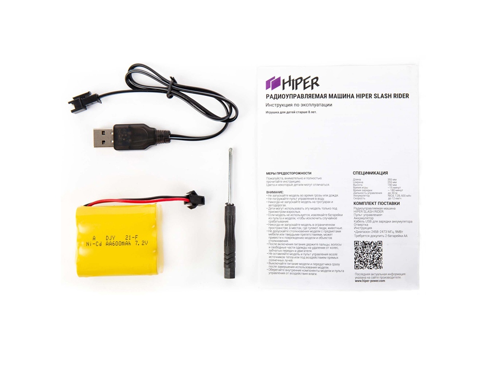 Радиоуправляемый внедорожник HIPER SLASH RIDER выполнен в масштабе 1:12, оборудован прочным кузовом, полным приводом, пружинной подвеской колёс и надёжным электромотором. Внедорожник ярко и привлекательно выглядит, он создан покорять бездорожье. ЭФФЕКТНАЯ ЕЗДА Огромные шины с агрессивным протектором позволяют ездить практически по любому покрытию, а влагозащищенный корпус позволяет запускать внедорожник даже в самую мокрую погоду. Продуманная конструкция обеспечивает плавность хода и быстрый разгон до максимальной скорости. ПРОСТОЕ УПРАВЛЕНИЕ Автомобиль хорошо слушается команд, отданных с помощью пульта дистанционного управления. С ним справится не только взрослый, но и ребёнок. Особенности: • Масштаб 1:12 • Полный привод 4х4 • Скорость до 12 км/ч • Ударопрочный корпус • Пружинные амортизаторы • Влагозащищенный корпус Технические характеристики: - Радиус действия: до 30 метров - Длина машины – 36 см - Ширина машины – 25,5 см - Высота машины – 19 см - Аккумулятор : Ni-Cd 7.2В / 600 мАч - Время игры: ~ 15 мин - Время зарядки: ~ 180 мин