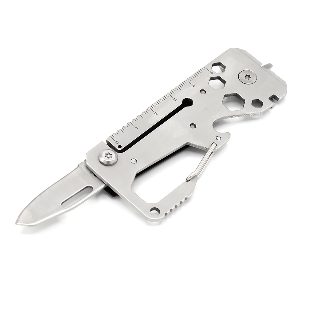 Карманный специализированный мультиинструмент «Бремен» является многофункциональным инструментом с удобным хватом и оптимальным функционалом. Модель создана для выполнения мелких работ как в хозяйстве, так и на природе. Включает в себя инструменты наиболее необходимые в повседневной жизни: Нож, Шлицевая отвертка, Открывашка, Карабин, Крестовая отвертка, Шестигранный ключ (4,5,6,8 мм), Линейка. Уникальный дизайн, что придает определенный шарм и привлекательность.