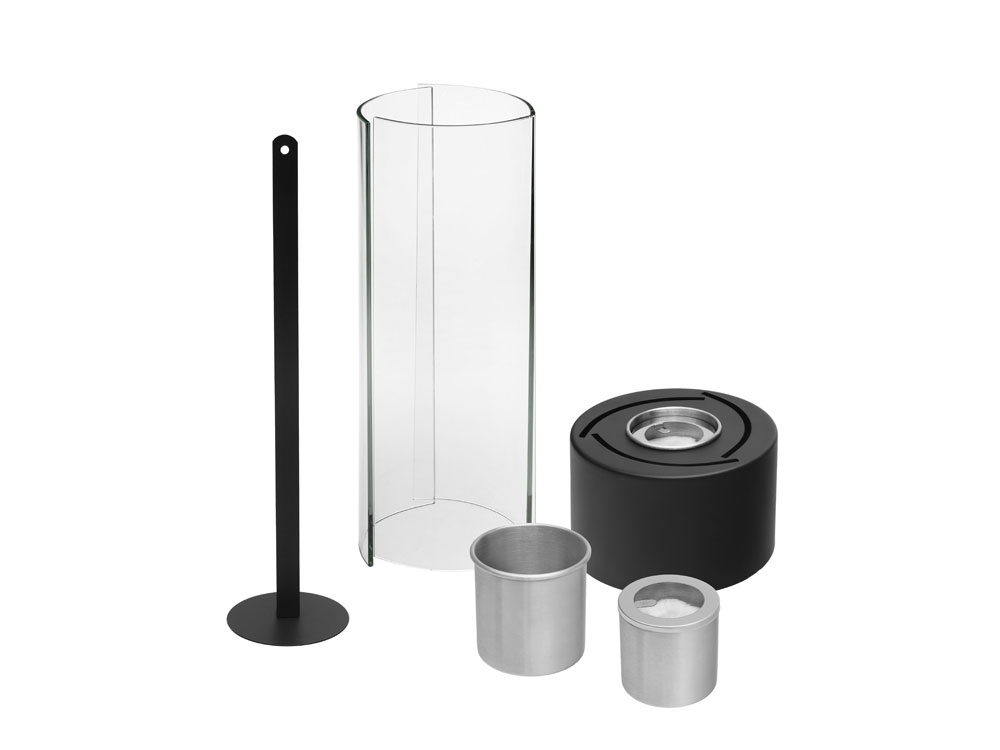 Комплектность стеклянные перегородки из закаленного стекла (3 шт.), металлическая заглушка, металлическое основание, емкость для биотоплива