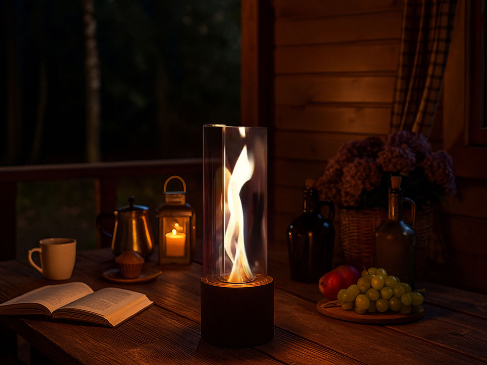 Биокамин Dance of flame — это не просто источник живого огня, а настоящий декоративный перформанс. Его главная особенность — тройная конструкция стеклянных панелей. Они расположены так, что между ними свободно гуляет воздух, создавая внутри завораживающий эффект: пламя не просто горит — оно кружится, словно танцует вальс. Этот динамичный огненный рисунок делает биокамин выразительным центром внимания, добавляя интерьеру атмосферу современного уюта и лёгкой магии. Камин работает на жидком биотопливе на основе этанола (в комплект не входит), не выделяет дыма и не требует дымохода, поэтому его можно установить практически в любом помещении. Перед использованием обязательно ознакомьтесь с инструкцией и соблюдайте меры безопасности. Не оставляйте горящий биокамин без присмотра, а топливо храните в недоступном для детей и домашних животных месте.