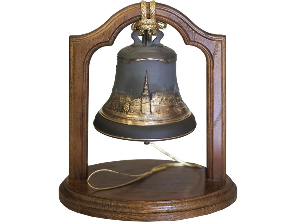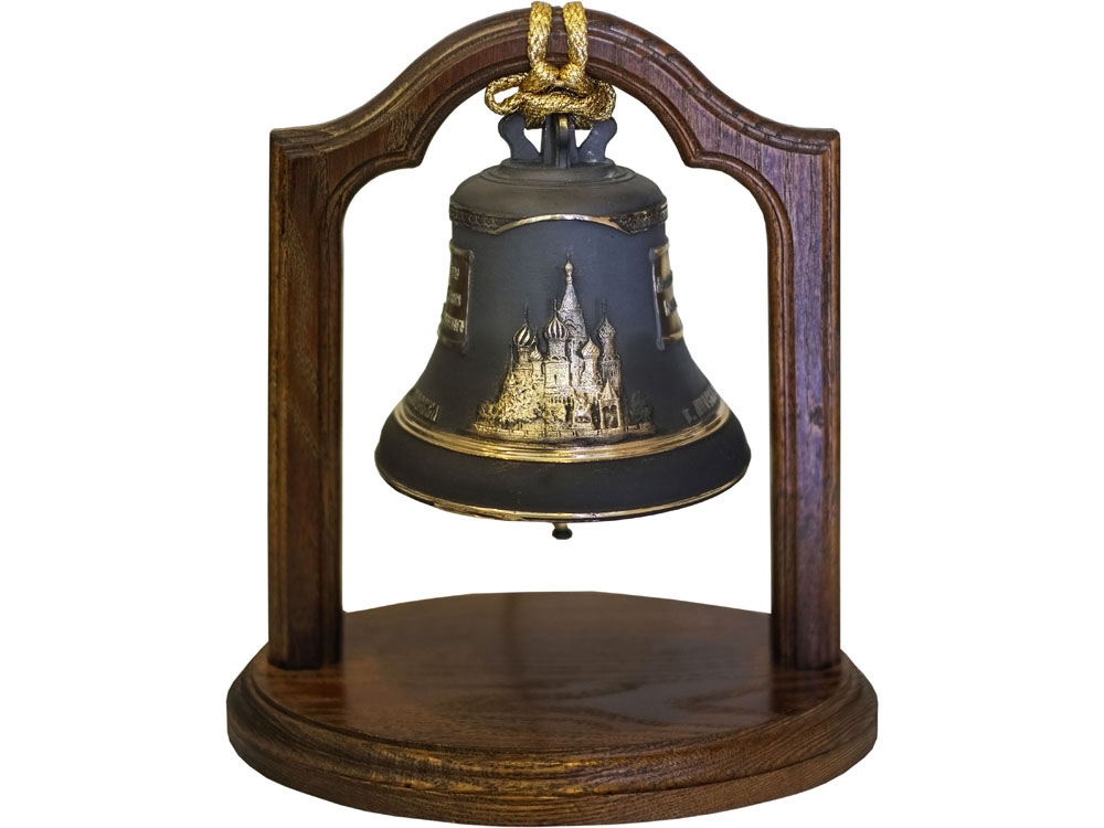 Колокол сувенирный весом 1кг Всея Руси на дубовой подставке. Поверхность колокола черненая с вызолочением. Настольные колокола делают те же производства, что льют и большие колокола для российских церквей. Поэтому они и звучат тем неповторимым малиновым звоном, который всегда ценился в отечественных колоколах. Настольный колокол - это ни только прекрасная интерьерная композиция, но и просто живая” частичка России. Ударьте в него, закройте глаза и слушайте, слушайте...