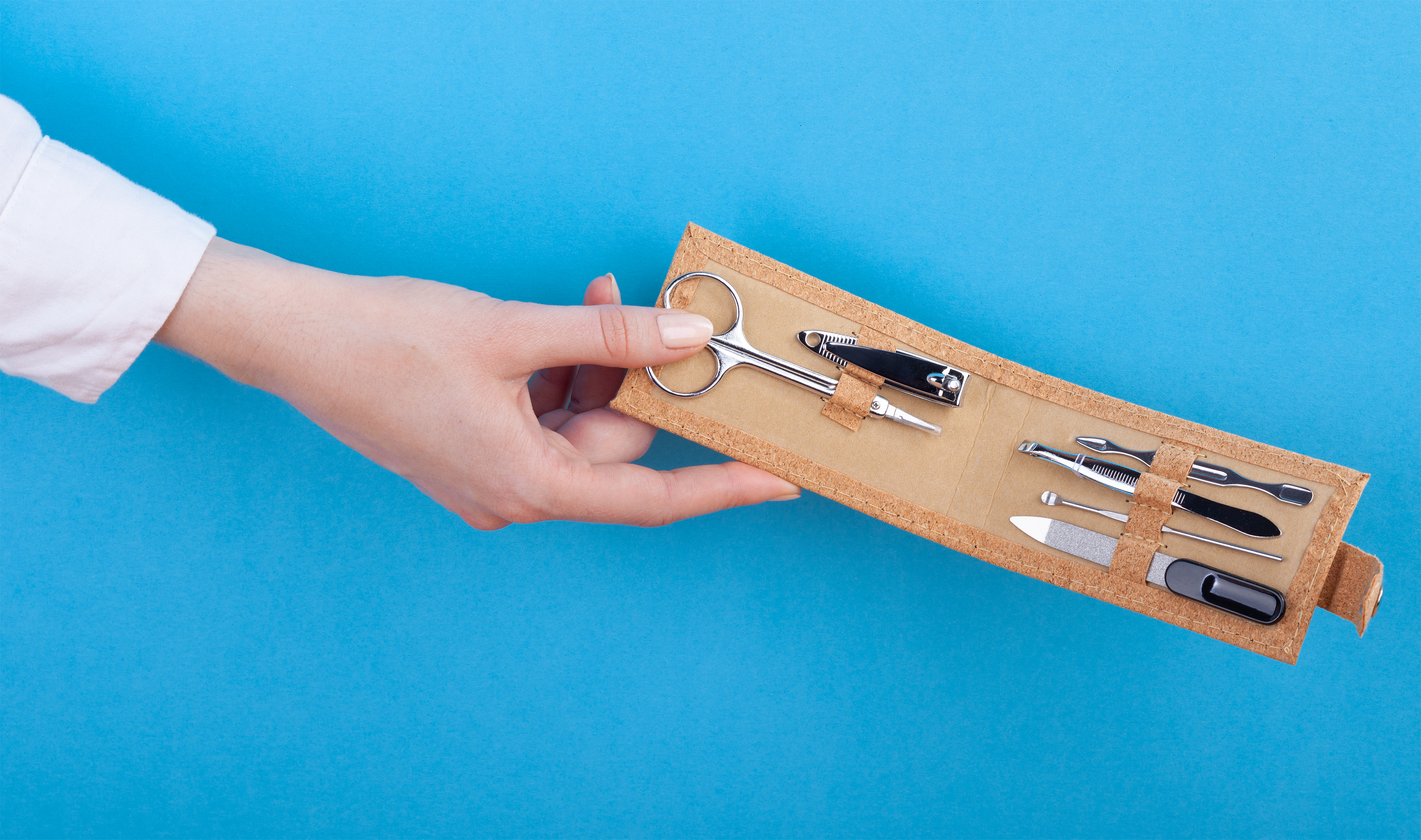 Маникюрный набор на 6 предметов в футляре с пробковым покрытием.