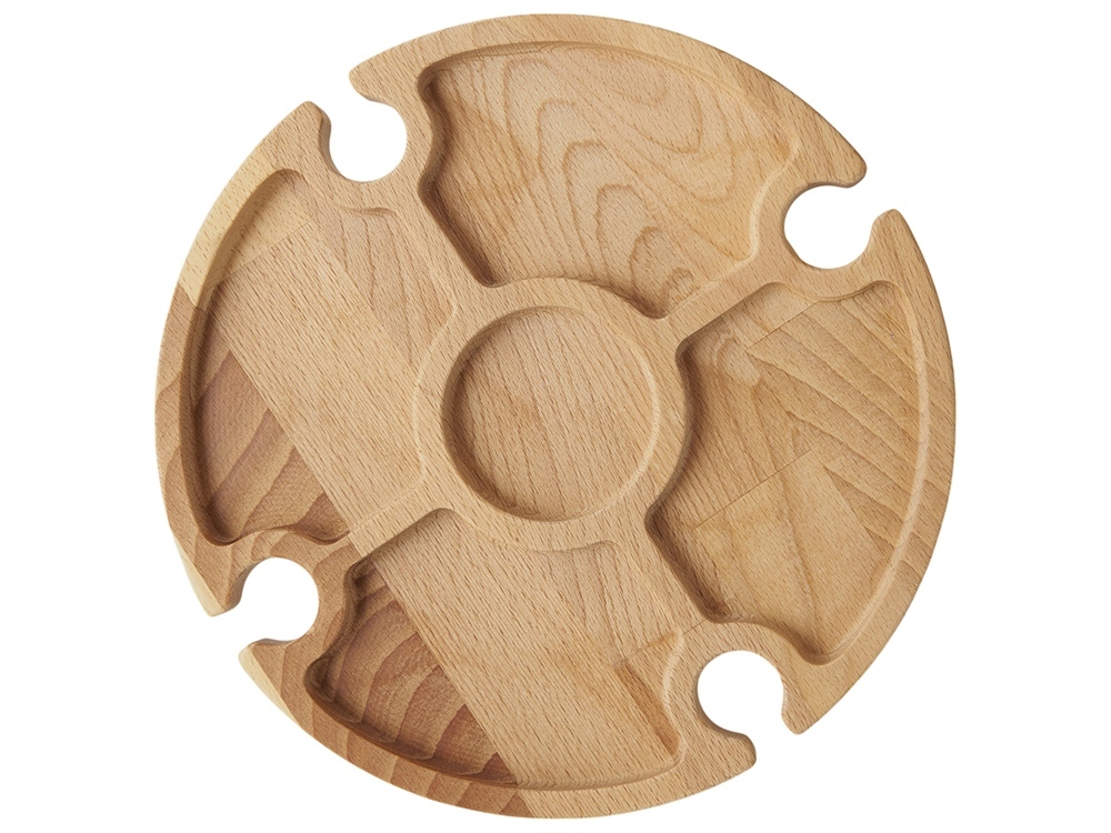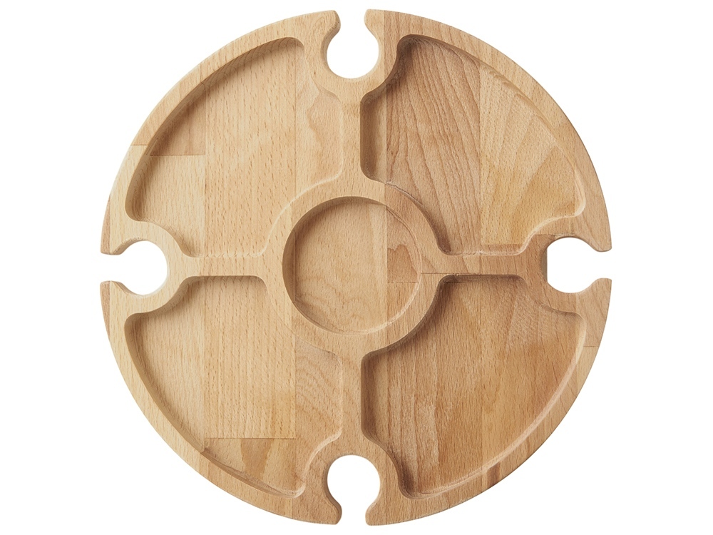 Деревянный столик на складных ножках может быть использован как во время пикников на открытом воздухе, так и дома, где его можно использовать прямо на полу. Столик позволяет подать 4 вида различных закусок, не смешивая их, благодаря четырем сепарированным секциям, в которые можно поместить ягоды, орехи и другие снеки, желательно, сухие либо подающиеся в масле (оливки, маслины). Четыре держателя для бокала особенно актуальны во время отдыха на природе, где каждый участник пикника обязательно оценит возможность зафиксировать посуду для вина. Помимо функциональности столика не можем не отметить и его эстетичность, которая позволяет изящно преподнести вино и снеки к нему. - 4 вместительных отделения для закусок - 4 держателя для бокалов - натуральный бук, обработанный минеральным пищевым маслом - удобные складные ножки - для приятных вечеров на природе и дома Натуральный бук, из которого выполнен столик, как и любое дерево, требует ухода, который существенно продлит ему жизнь и позволит радовать своего обладателя в течение многих лет. Пропитывание пищевым маслом (растительное, льняное и т.д.) раз в один-два месяца поможет сохранять свежий вид изделия. Рекомендации по использованию: - не рекомендуется использовать в посудомоечной машине, микроволновой печи, замачивать в раковине с водой - не использовать агрессивные моющие средства - использовать мягкую губку для очищения - вытирать насухо после мытья - транспортировать изделия при температурном режиме от +5°C до +20°C - хранить в помещениях с влажностью до 65-70% - не подвергать прямым солнечным лучам - не подвергать нагреву - хранить при температуре от +5°C до +20°C - не оставлять на морозе от -10°C на более чем 6 часов