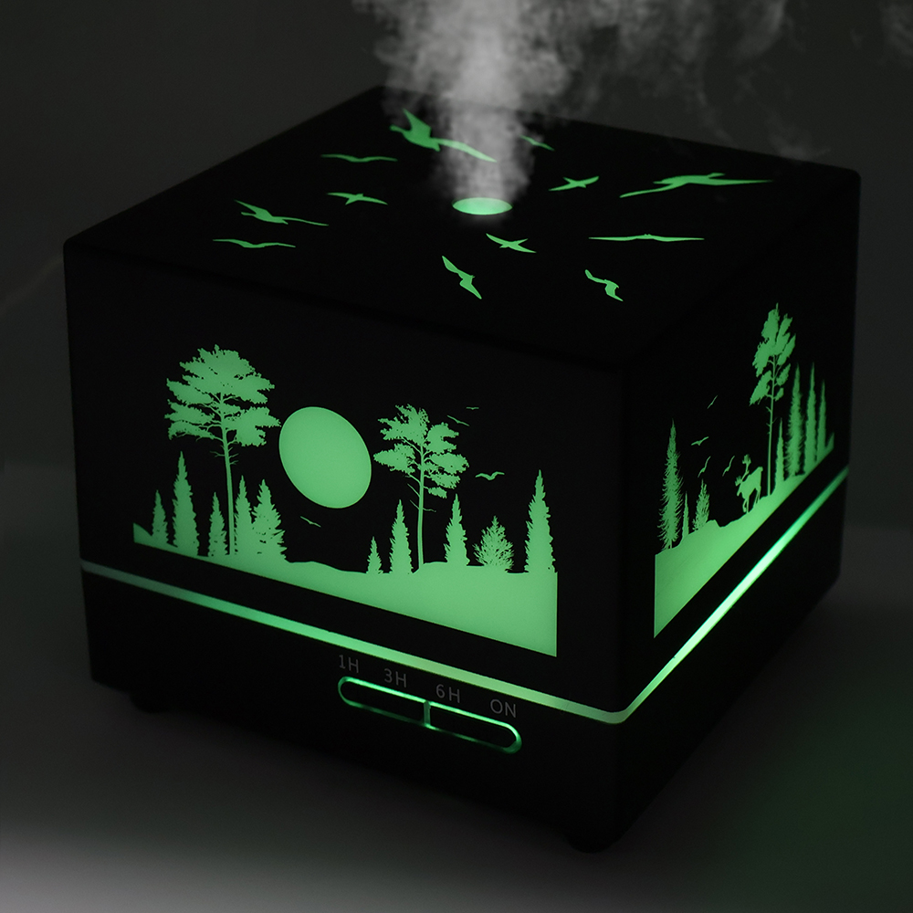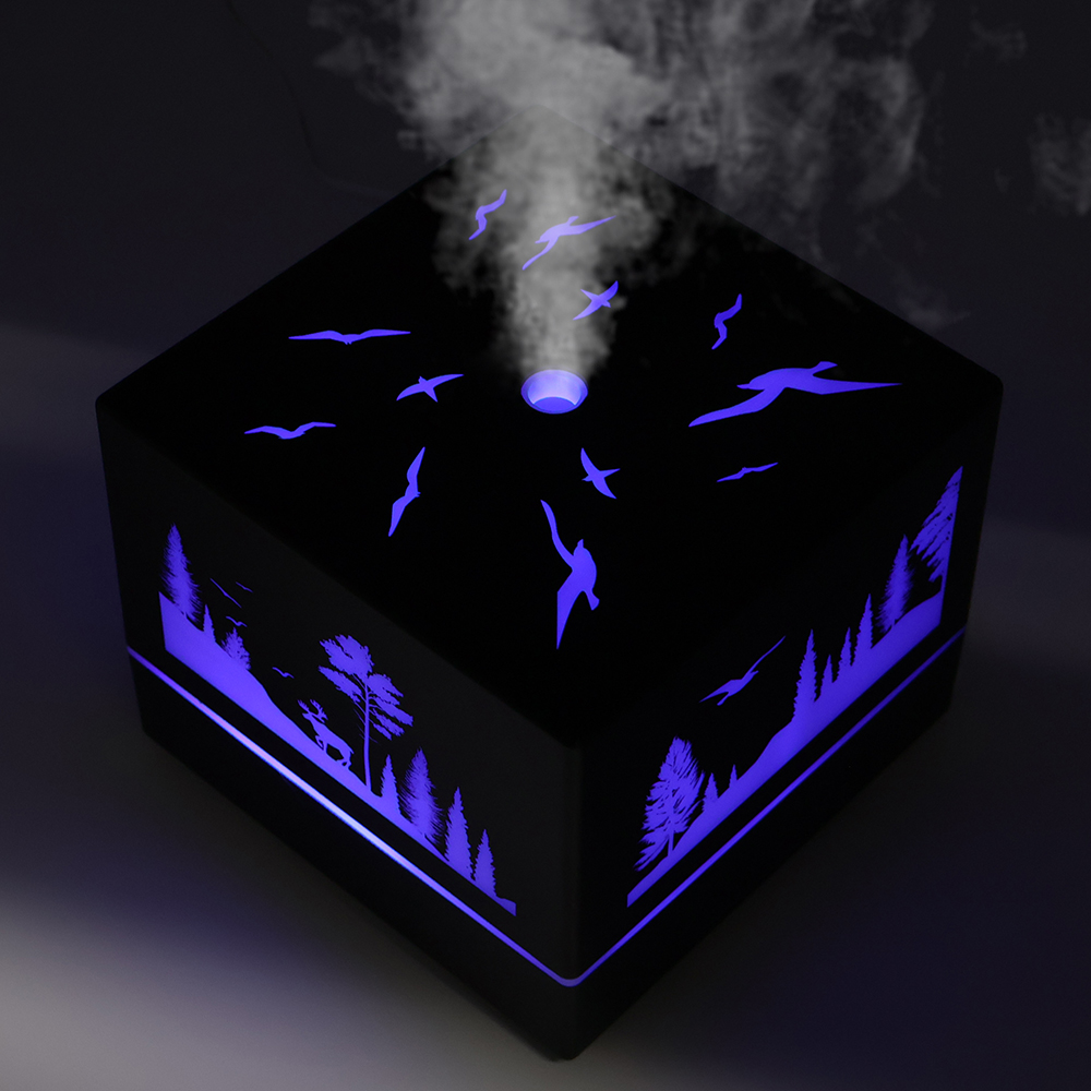 Светодиодный увлажнитель Wisdom с подсветкой гравировки - это компактное и удобное устройство, предназначенное для увлажнения воздуха в помещении. Он работает только от домашней сети 220 Вольт через блок питания из комплекта поставки Этот увлажнитель оснащен светодиодной подсветкой, которая создает уютную атмосферу и приятное освещение. Кроме того, на корпус увлажнителя можно нанести любое изображение под гравировку, что делает его отличным подарком или корпоративным сувениром. Выгравированный рисунок подсвечивается в цвет подсветки (можно установить конкретный цвет из палитры цветов, либо выбрать режим автоматического изменения цветов) Увлажнитель Wisdom легко заполняется водой и обеспечивает равномерное распыление влаги, что помогает увлажнить сухой воздух и создать комфортные условия в помещении. Он также может быть использован с эфирными маслами для ароматического увлажнения воздуха. Управляется с кнопок на лицевой панели увлажнителя, и с дистанционного пульта, входящего в комплект поставки.