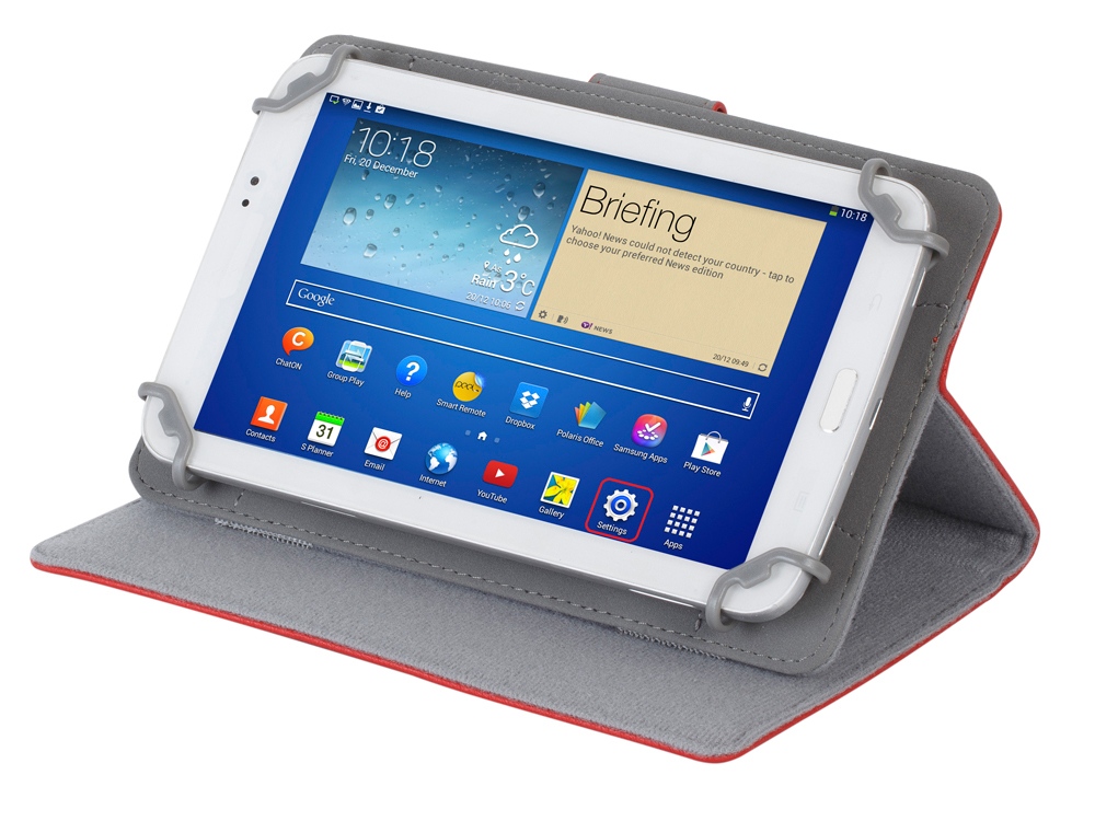 Чехол для планшетов до 7''. • Универсальный чехол для планшетов до 7 (Samsung Galaxy Tab 4 7.0/ Acer Iconia Tab B1-710 / Asus Fonepad Me372CL / Lenovo LePad A2207). • Чехол выполнен с использованием различных материалов: - материал верха - высококачественная искусственная кожа; - внутренний материал контактирующий с тачскрином - микрофибра; - внутренний материал в зоне крепления (под планшетом) - нескользящая дорогая искусственная кожа. • Запатентованная система крепления 4Sure - универсальные зажимы из гибкого, прочного пластика на высококачественной эластичной ленте. Легко устанавливать и вынимать планшет. • С помощью двух скрытых липучек планшет можно фиксировать под разными углами в режиме просмотра. В закрытом состоянии фиксируется магнитной застежкой. В открытом - застежка крепится к обратной стороне, не мешая работе с планшетом. • Защита от боковых ударов. • Свободный доступ ко всем кнопкам, разъемам и динамикам. Мин. / Макс. внутренний размер (мм): от 106 x 175 / до 125 x 198.