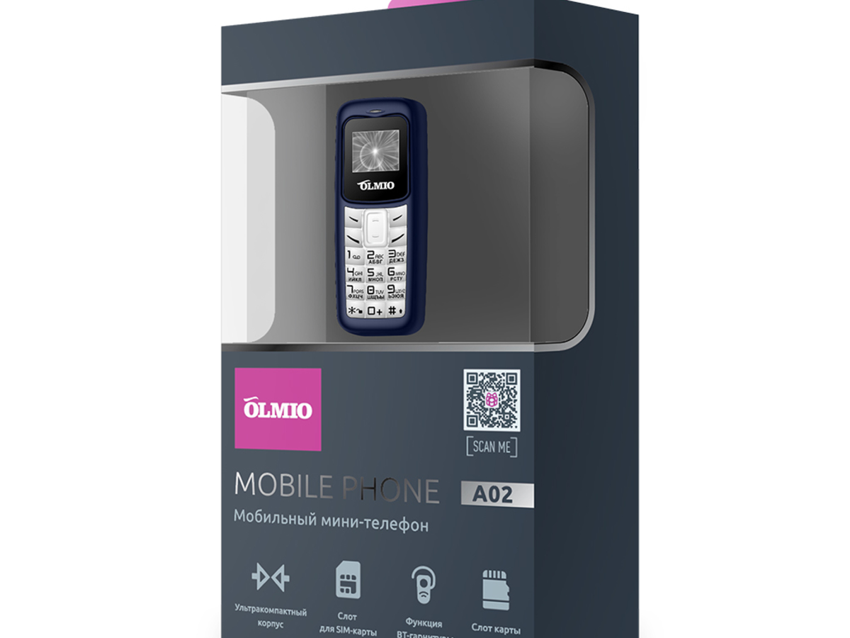Особенности 2 в 1! полноценный мобильный телефон с одним слотом для SIM-карты, отдельным слотом для карты памяти и Bluetooth-гарнитура в одном лице; Olmio A02 можно подключать к основному телефону или использовать в качестве гарнитуры, при этом можно дистанционно использовать телефонную книгу смартфона, набирать сообщения и даже переключать треки в плеере