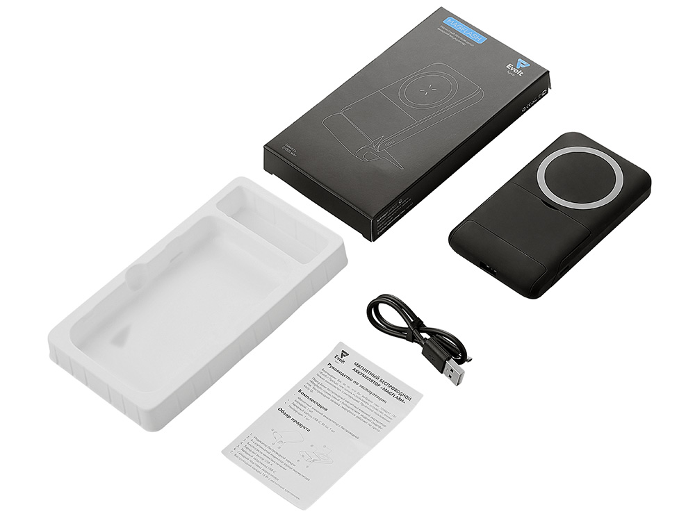 Комплектность магнитный внешний аккумулятор с беспроводной зарядкой, кабель USB - Type C, инструкция