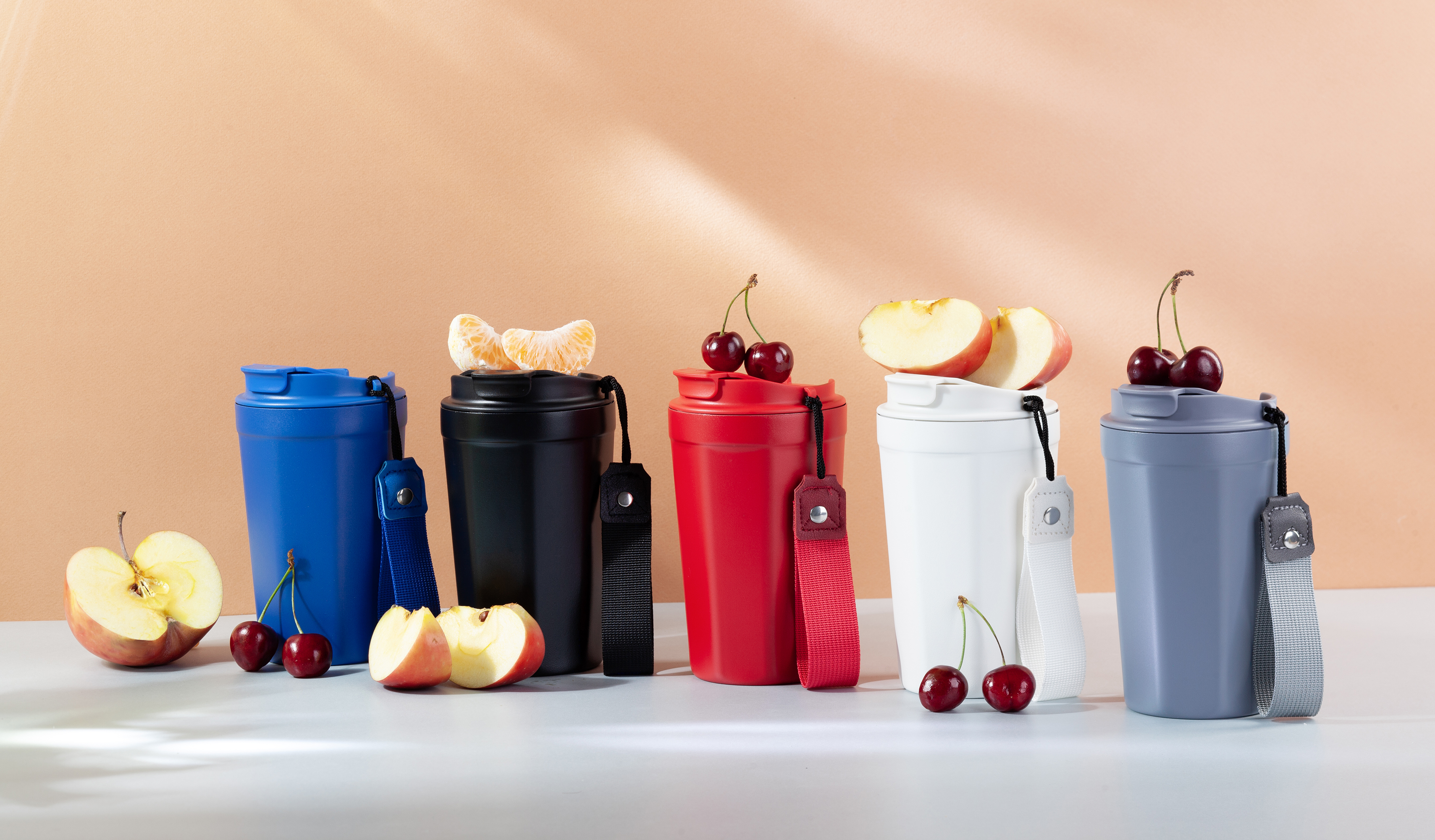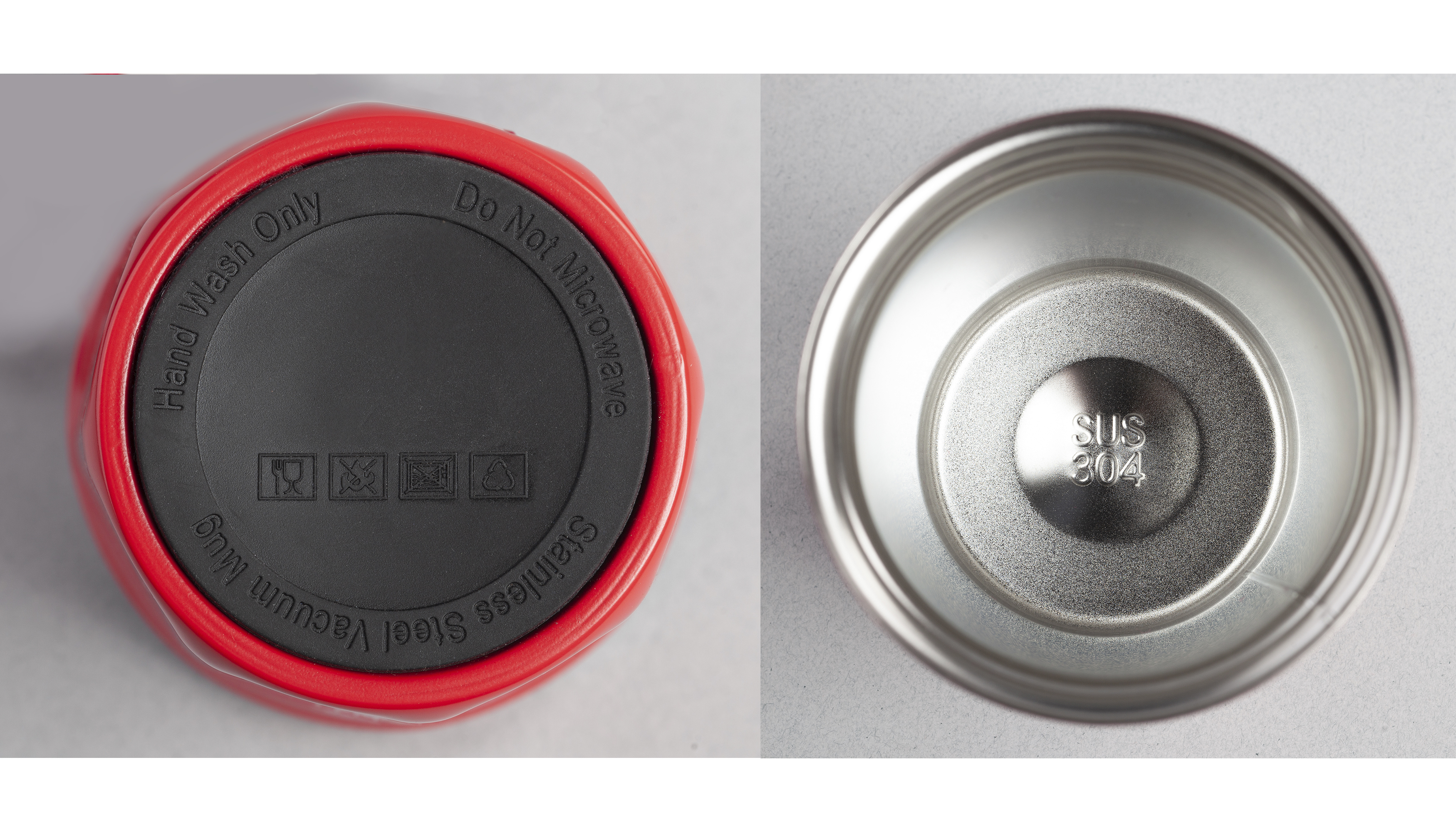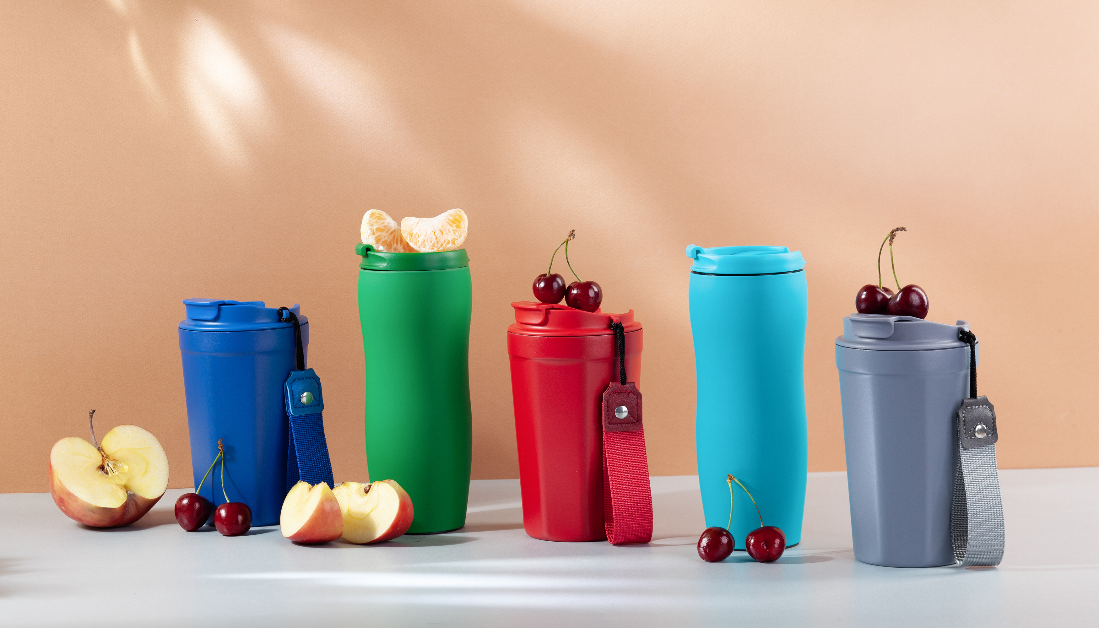 Герметичный термостакан с восьмигранной формой внешней стенки. Материал колбы 304 сталь, внешнее покрытие - порошковая краска (пудра). Крышка из  полипропилена на резьбе с силиконовым уплотнением, фиксация клапана в крайних положениях.