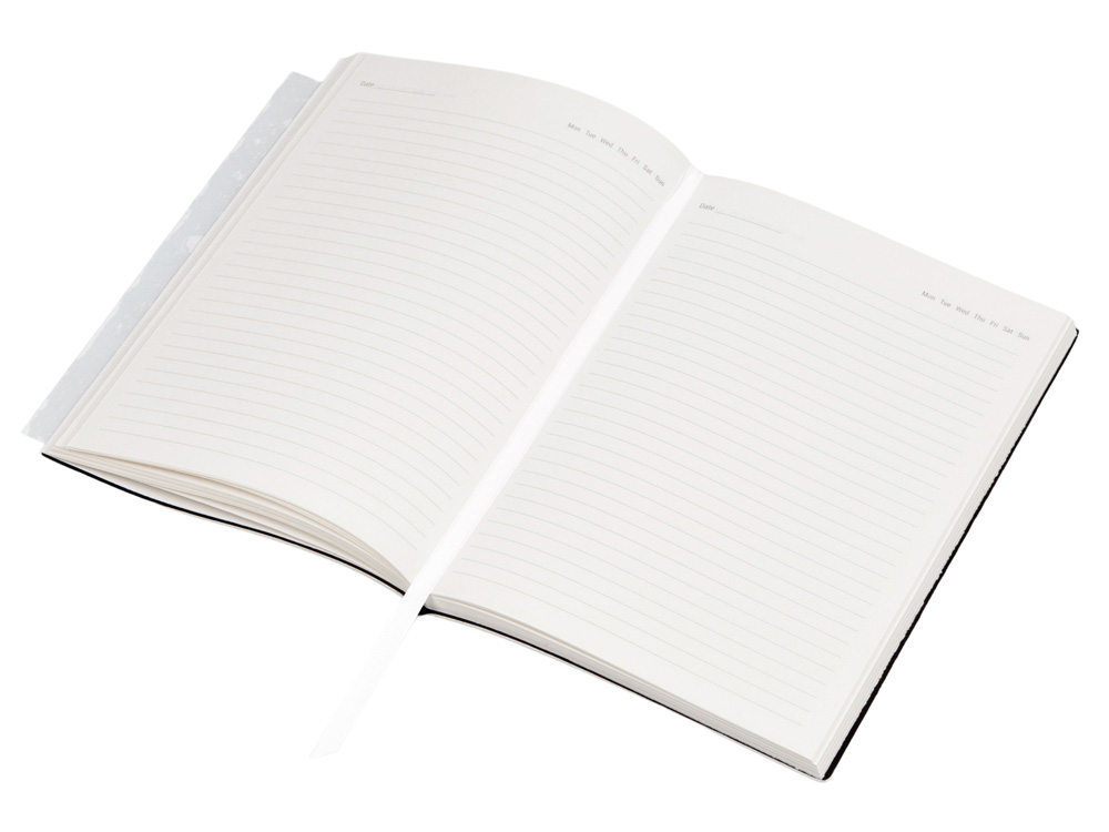 В блокноте 256 страниц в линейку, даты не указаны, что позволяет начать вести блокнот в любой удобный день года.