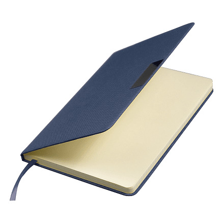 Блокнот А5 Hobard, в твердой тканевой обложке c резинкой в линейку, темно-синий