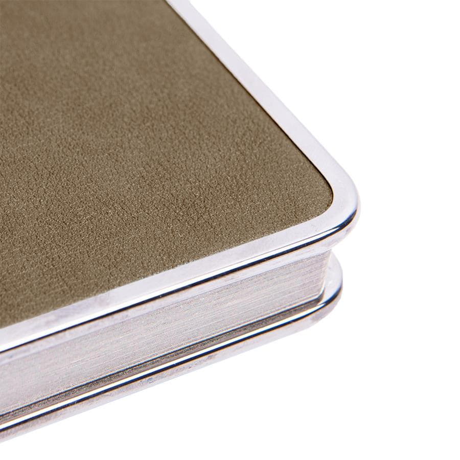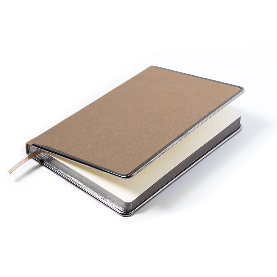 Цвет обложки, близкий к пантону 7531C Размер 145*205 мм Переплет твердый Металлическая рамка по периметру, цвет gun metal Обложка термоактивный PU Pinto Блок недатированный, в линейку Скругленные углы, двухцветная печать Бумага кремовая, плотность 70 г м2 Форзац нахзац кремовые 272 страницы Обрез в цвет металлической рамки Каптал и ляссе в цвет обложки Упаковка крафтовый сливбоксВ данный момент происходит смена справочной части блока. Внешний вид изделия остается без изменений.