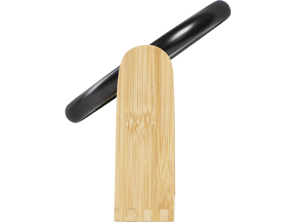Стильное двустороннее зеркало с бамбуковой подставкой в черной рамке. Одна сторона показывает стандартное отражение, другая - с 2-хкратным увеличением.