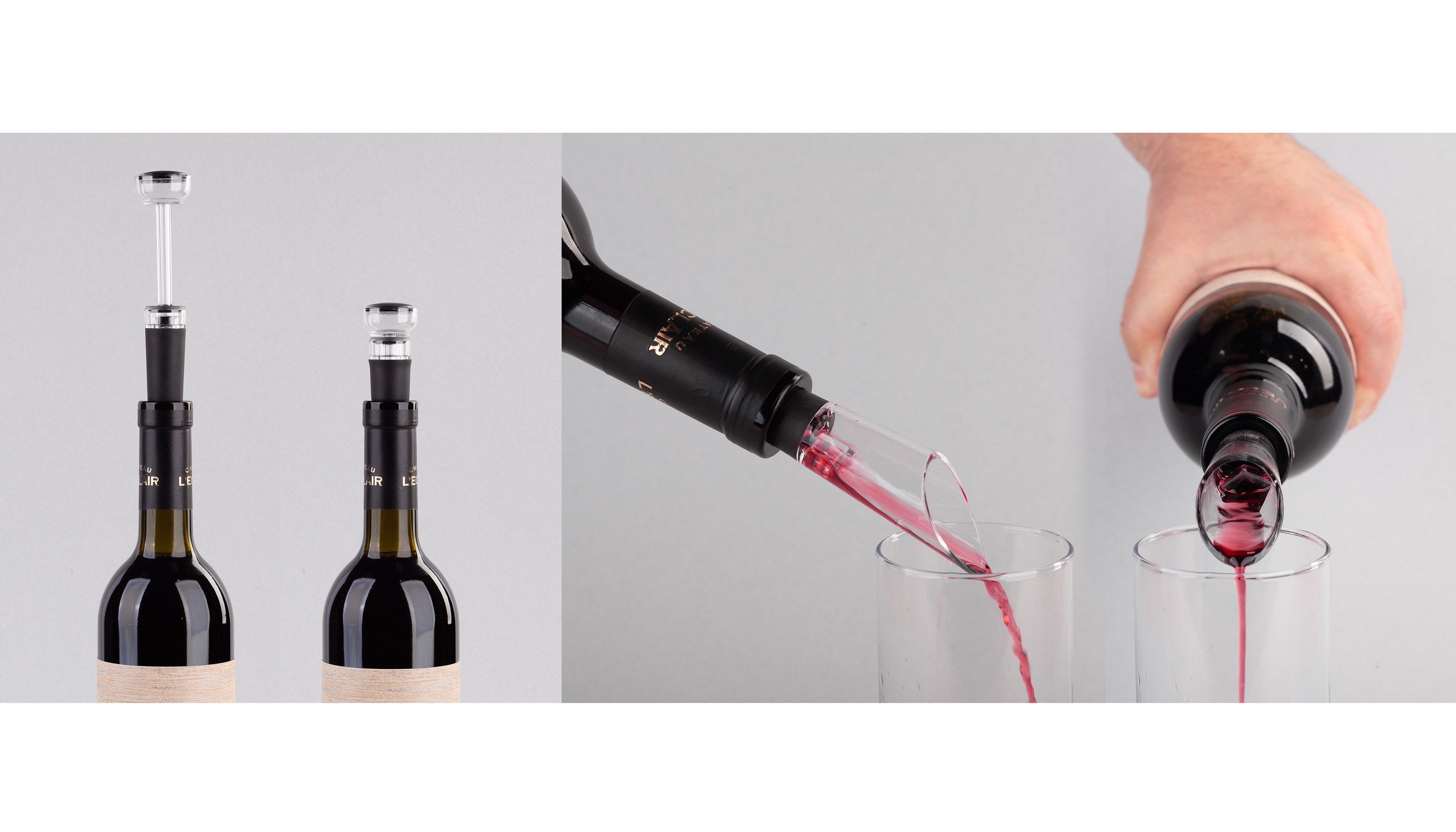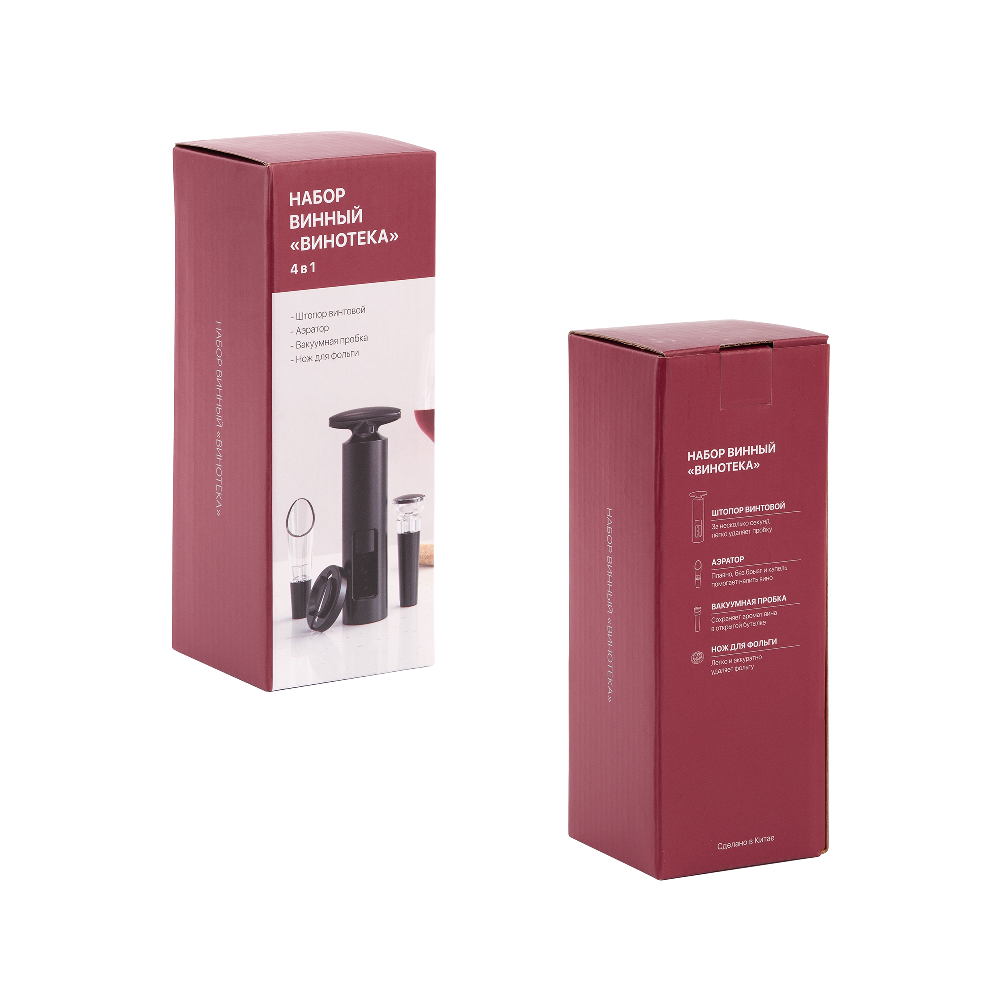 Набор из четырех аксессуаров для вина позволяет подготовить благородный напиток и в полной мере насладиться его вкусом.