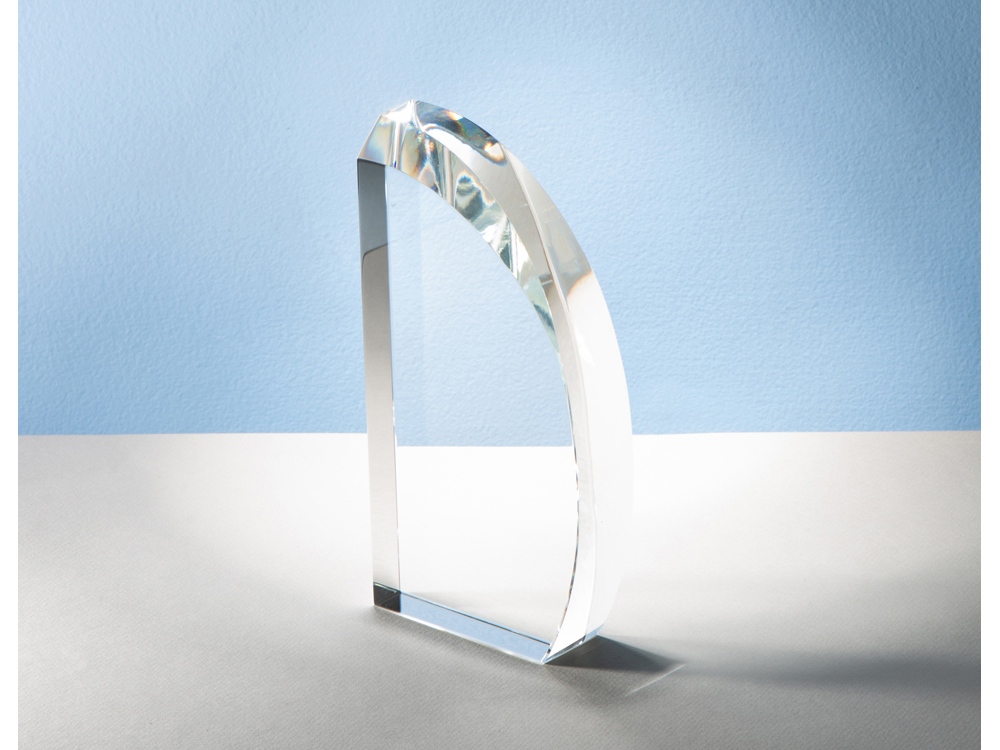 Награда по форме напоминает парус. Олицетворяет собой лёгкость, безмятежность и силу одновременно. Выполнена из прозрачного стекла и не имеет постамента. ·         Минималистичный дизайн ·         Интересная форма ·         Большая поверхность для нанесения
