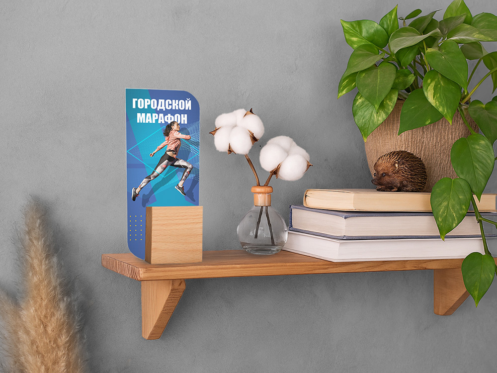 Наградная стелла из бука и акрила. Акриловую часть можно полностью запечатать методом УФ-печати.