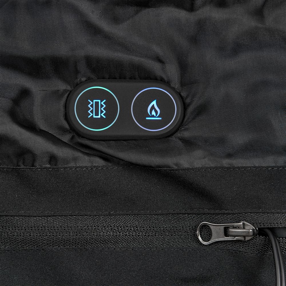 Утепленная куртка со встроенным нагревательным элементом из углеродного волокна в области спины, шеи и карманов. Дополнена системой вибрационного массажа для расслабления воротниковой зоны. Работает от внешнего аккумулятора (в комплект не входит), подарит ощущение тепла и комфорта в любую погоду.Для наибольшего комфорта можно вручную выбрать один из трех режимов работы или воспользоваться автоматическим: после 5 минут работы на максимальном уровне нагрева грелка самостоятельно перейдет в режим средней интенсивности.При использовании аккумулятора емкостью 10000 мАч нагревательный элемент будет работать от 6 до 12 часов в зависимости от выбранного режима работы и температуры окружающей среды.