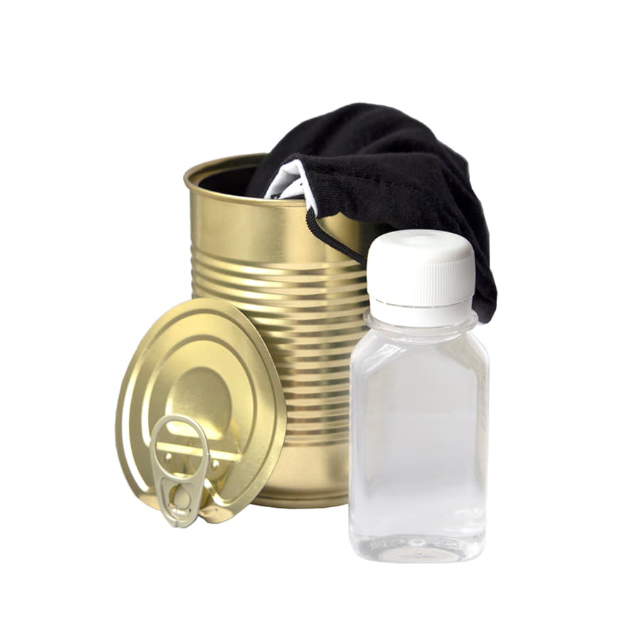 Комплект СИЗ #2 (маска серая, антисептик, перчатки белые), упаковано в жестяную банку