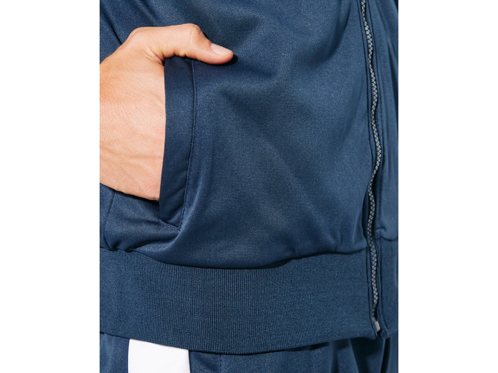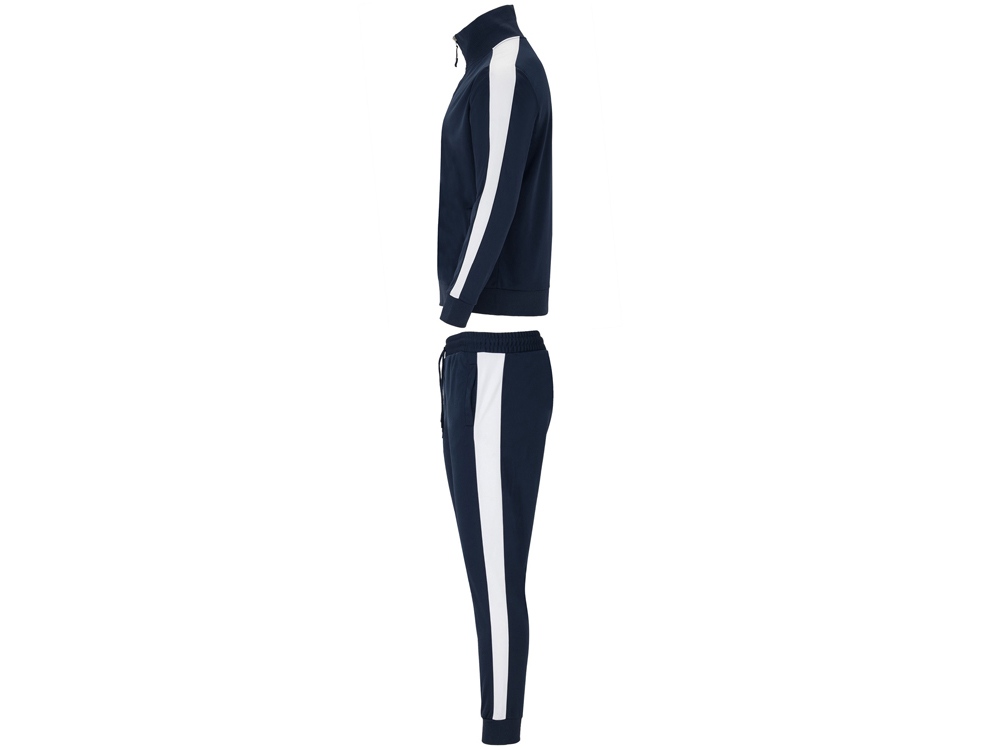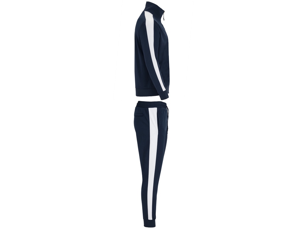 Cпортивный костюм с олимпийкой и брюками. - Высокий воротник. - Горловина, манжеты и низ из риба 1 x 1. - Молния по центру в тон с бегунком. - Боковые карманы кофты на молнии. - Контрастные лампасы по бокам. - Брюки с эластичным поясом со шнурком для регулировки по талии, двумя боковыми карманами. - Карман сзади на молнии. - Низ с эластичными манжетами из риба 1 x 1.
