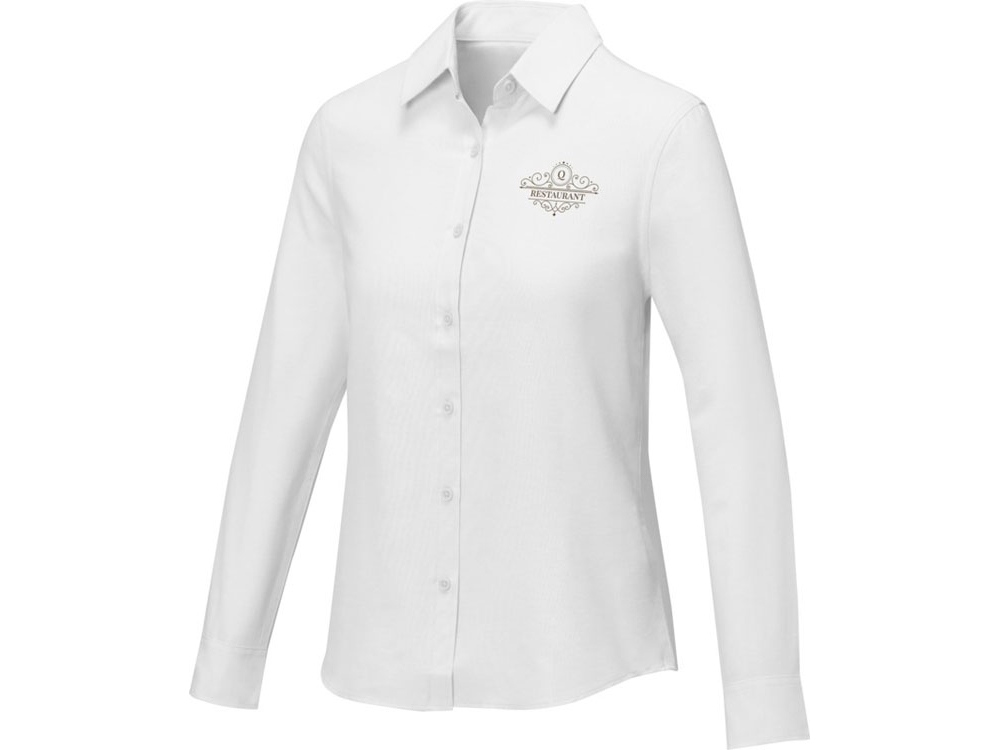 Pollux женская рубашка с длинными рукавами. Отрывной-отрезной лейбл. Регулируемая манжета рукава с одной складкой. Пуговицы в тон. Встречная складка на спинке. Ткань Оксфорд 55% хлопка, 45% полиэстера, 130гр.