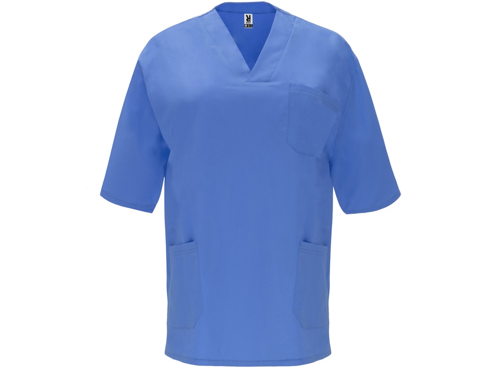 Рабочая блуза унисекс с короткими рукавами и горловиной с V-образным вырезом с небольшим запахом. Один нагрудный карман и два карманы по бокам. Боковые разрезы. Комбинируется с брюками Vademecum.