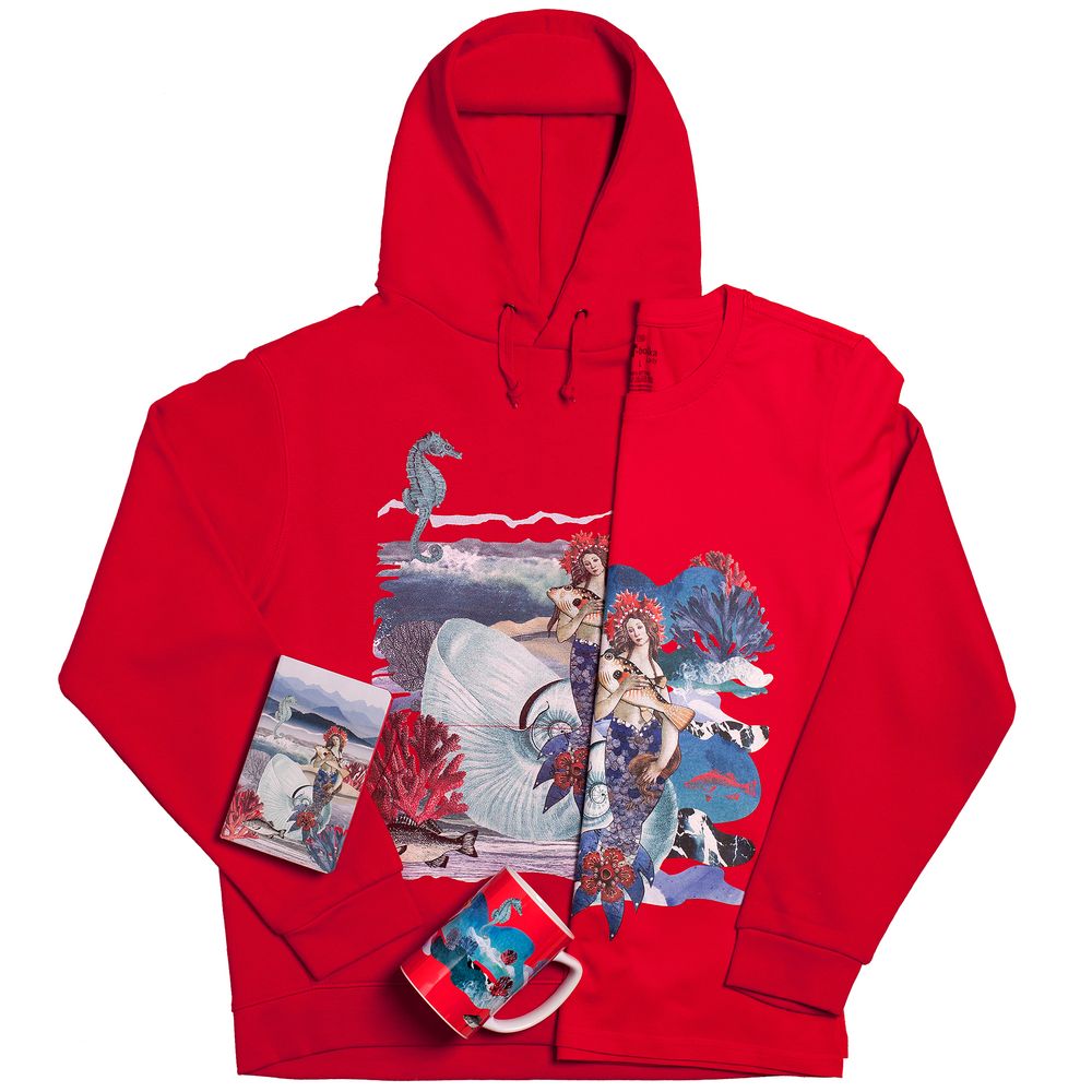 На небесах только и говорят, что о море, а на земле — о коллекции Ragazza di Mare («Морская дева»), на создание которой дизайнеров вдохновили римская мифология, живопись Сандро Боттичелли и сама водная стихия.Мы знаем, что «море внутри», а с Ragazza di Mare красотой и символизмом подводного мира можно поделиться с любимыми друзьями, коллегами и партнерами.Коллекция выполнена в актуальном для 2019 года насыщенном коралловом цвете, который гармонично подчеркивает основные холодные оттенки принта.Толстовка свободного кроя с капюшоном.