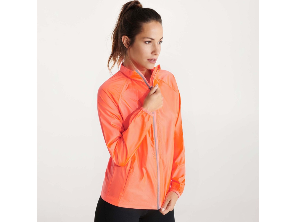 Ветровка из водонепроницаемой ткани на подкладке: *внутренний воротник из дышащей ткани с отделкой плоским швом *водонепроницаемая молния со светоотражающим кантом *дышащая ткань по проймам *передние карманы на молнии *изделие складывается во внутренний карман *резинкой обработаны низ изделия и манжеты *светоотражающий принт на спинке