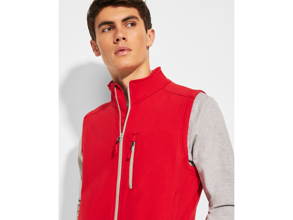 Жилет из 2-х слойного софтшелл материала. - Контрастная водоотталкивающая молния с защитой для подбородка. - Три внешних кармана на молнии с бегунком в тон. - Низ с эластичным шнуром и регуляторами.