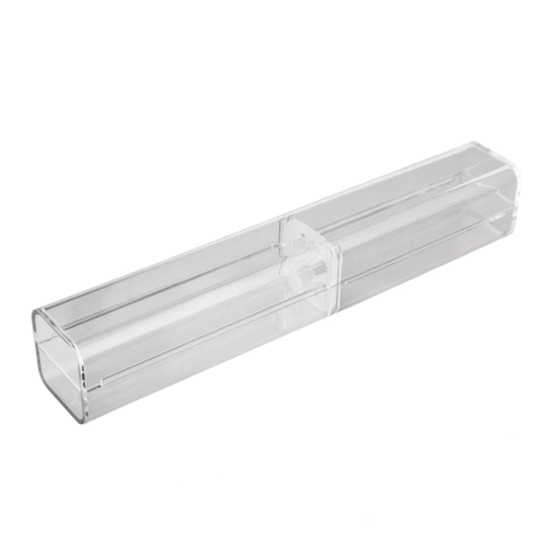 Прозрачный пластиковый футляр для одной ручки диаметром от 9 до 13 мм. На футляр можно нанести логотип. На поверхности футляров могут встречаться потертости и царапины.