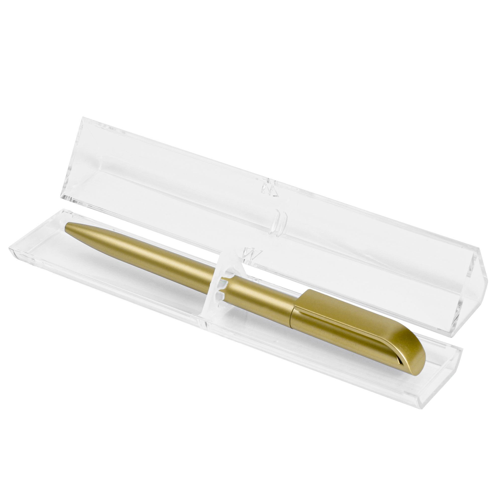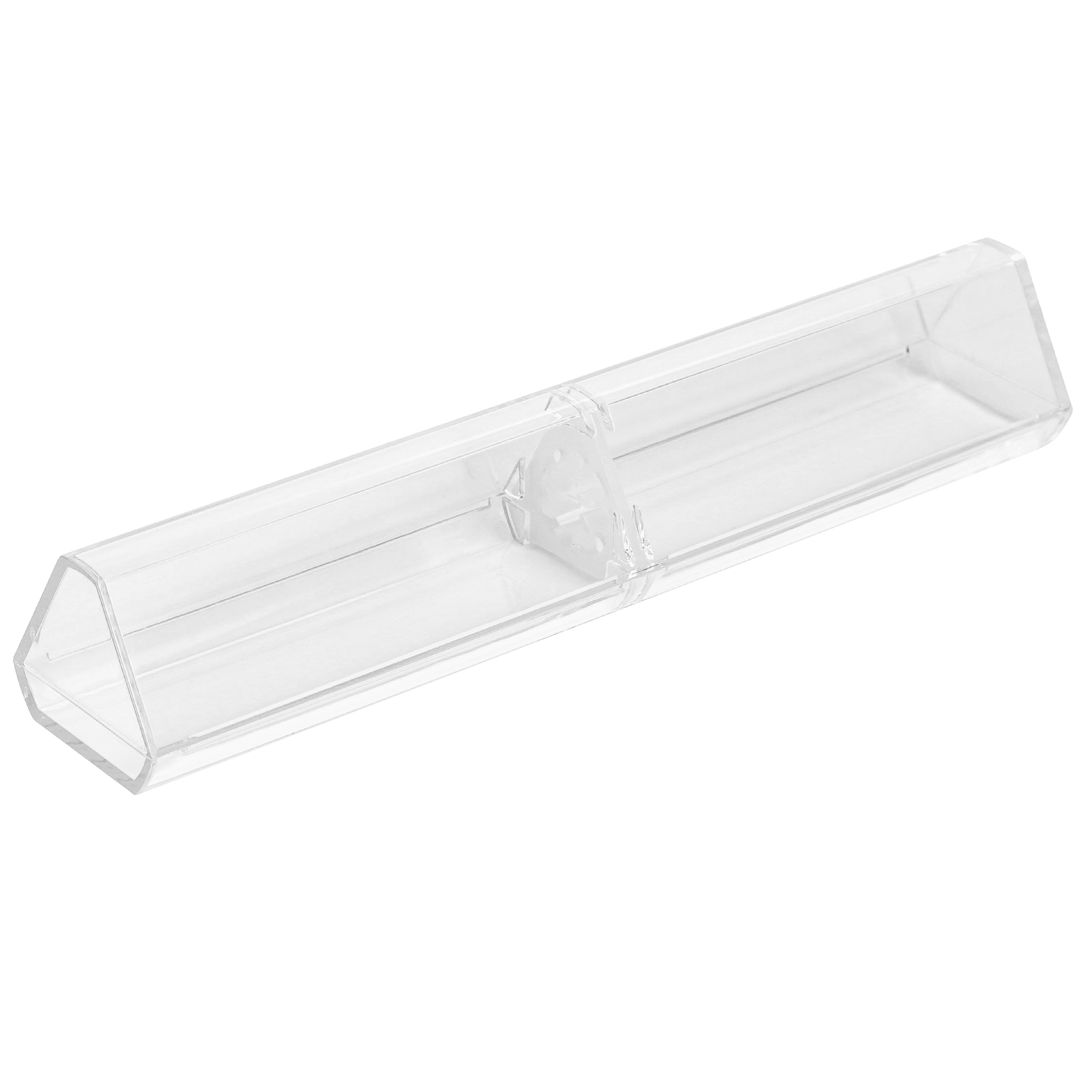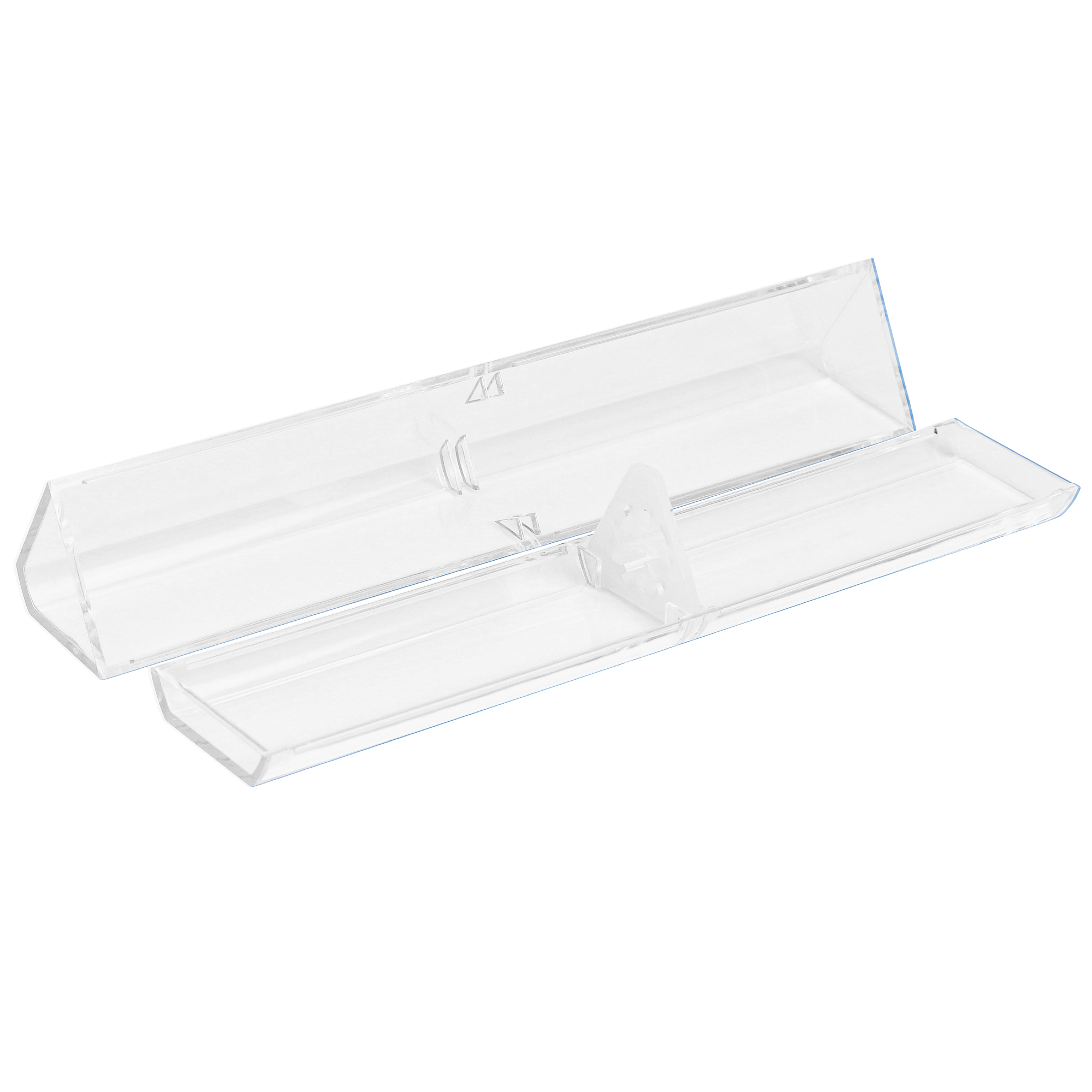Прозрачный пластиковый футляр треугольной формы для одной ручки диаметром от 9 до 13 мм. На футляр можно нанести логотип. На поверхности футляров могут встречаться потертости и царапины.