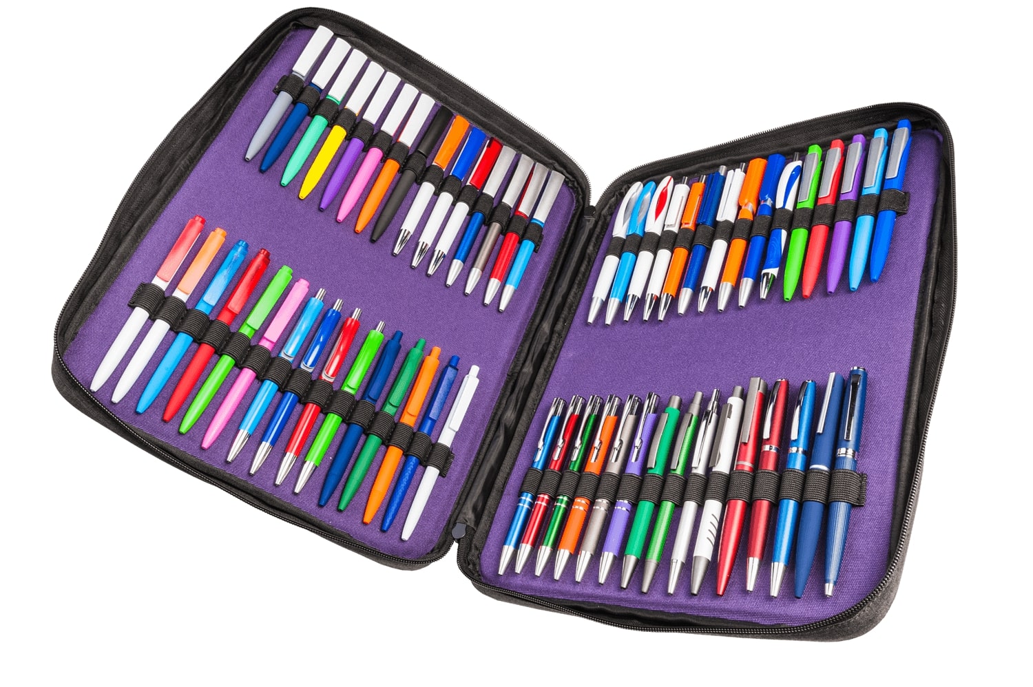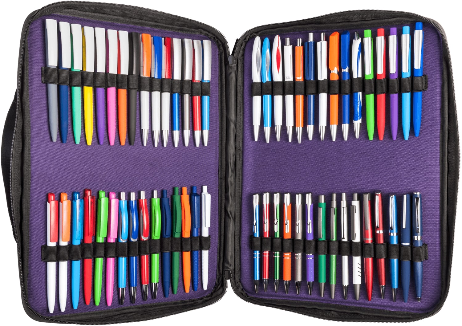 Презентационный портфель с образцами всех моделей ручек. В комплекте 15 металлических ручек и 45 пластиковых. Портфель сделан из плотной ткани, на молнии. Можно использовать как сумку для ноутбука или документов. Удобно брать с собой для презентаций своим клиентам.