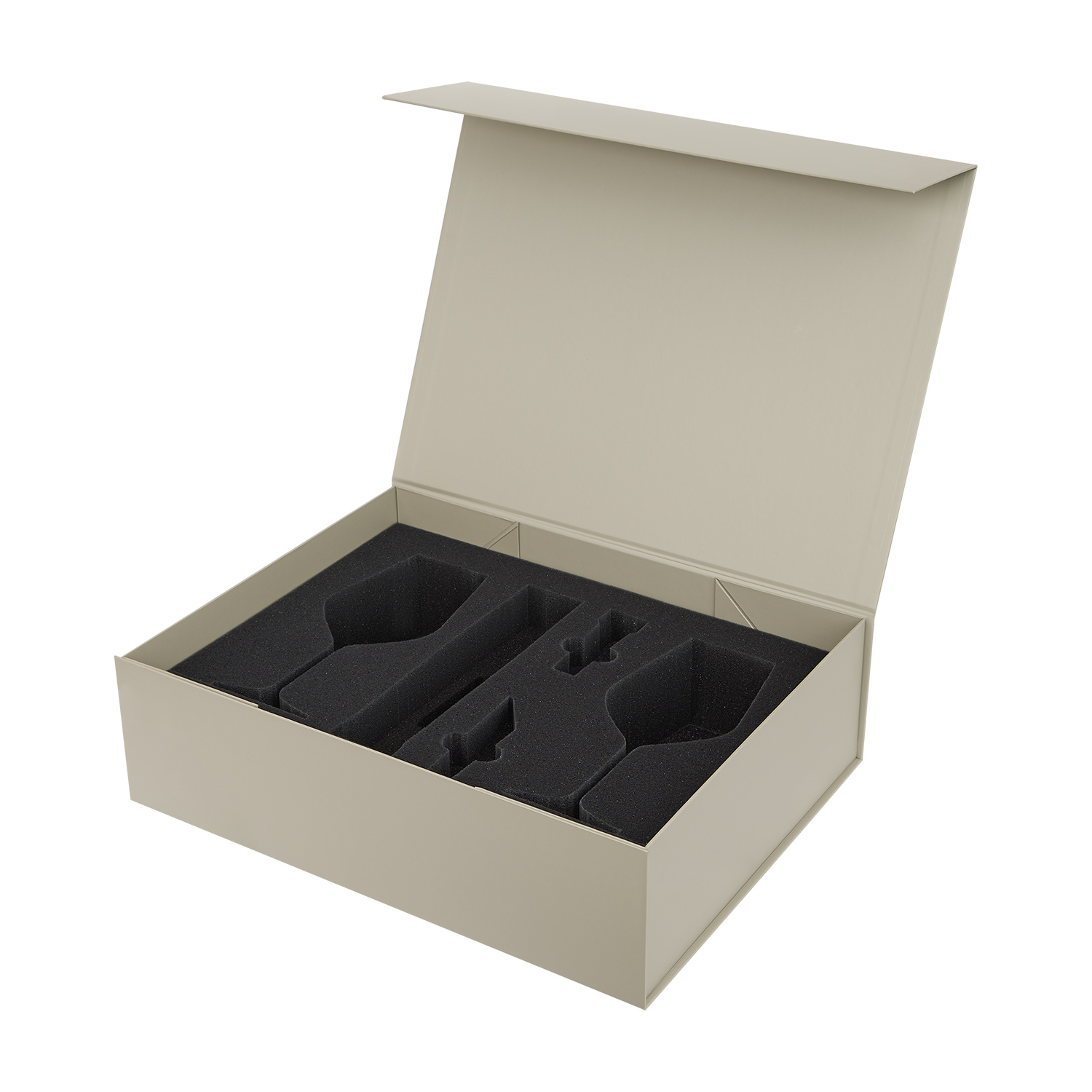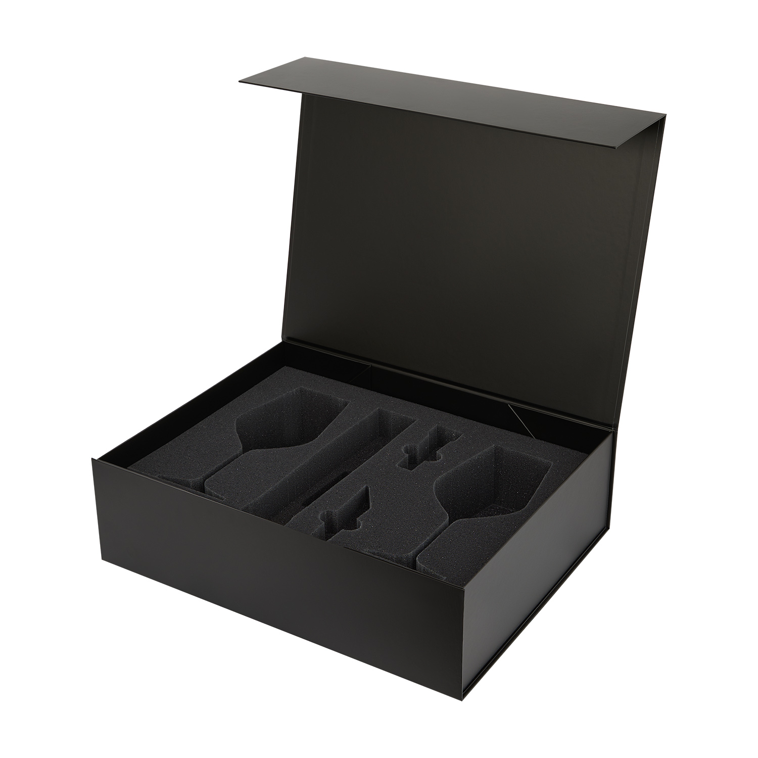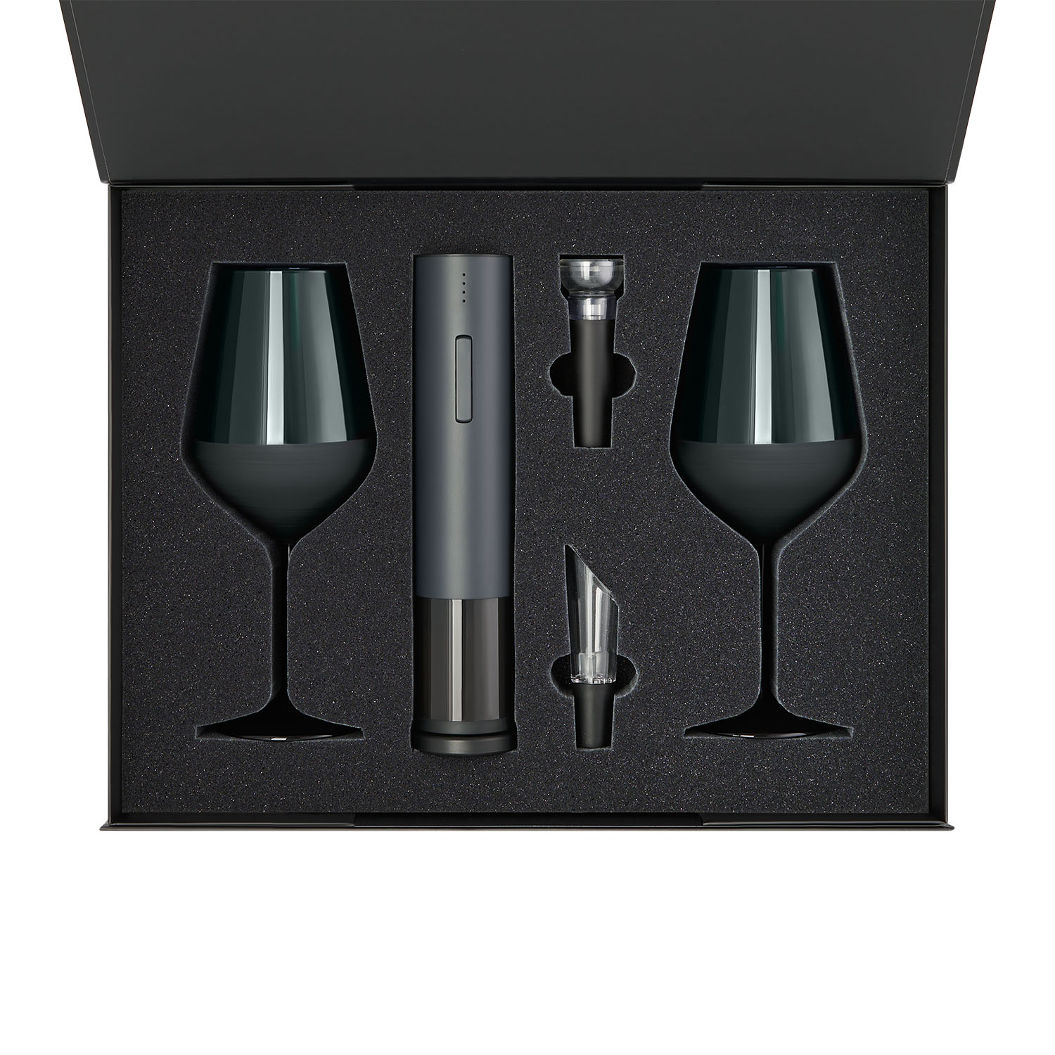 Идеальное решение для надежной и стильной упаковки двух бокалов для вина и набора для вина с электрическим штопором.