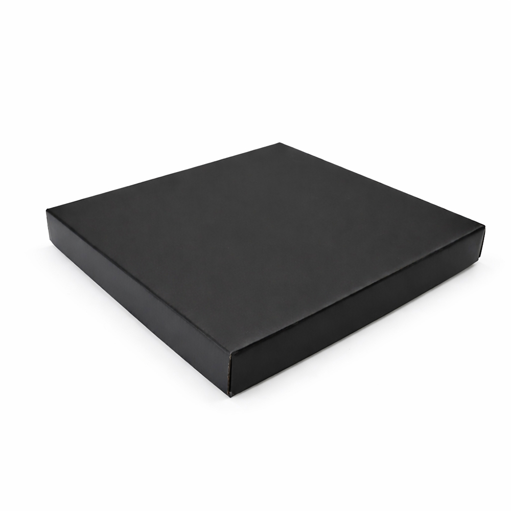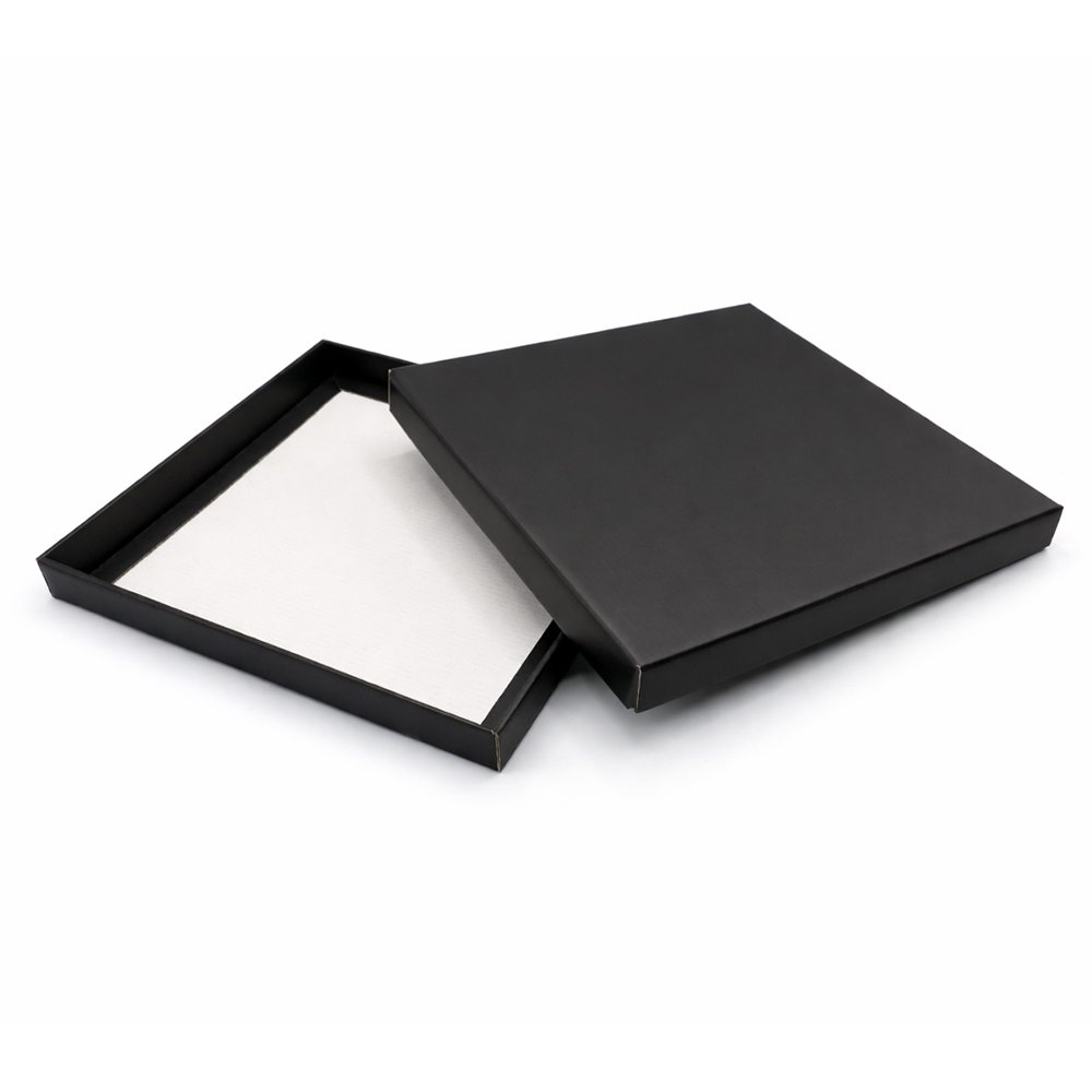 Стильная и функциональная коробка Contain типа "Крышка+дно" в черном цвете с матовой поверхностью. Внутренние размеры коробки: 25*25*2,5 см. Основа коробки - гофрокартон Т23Е. Поставляется в разобранном виде!