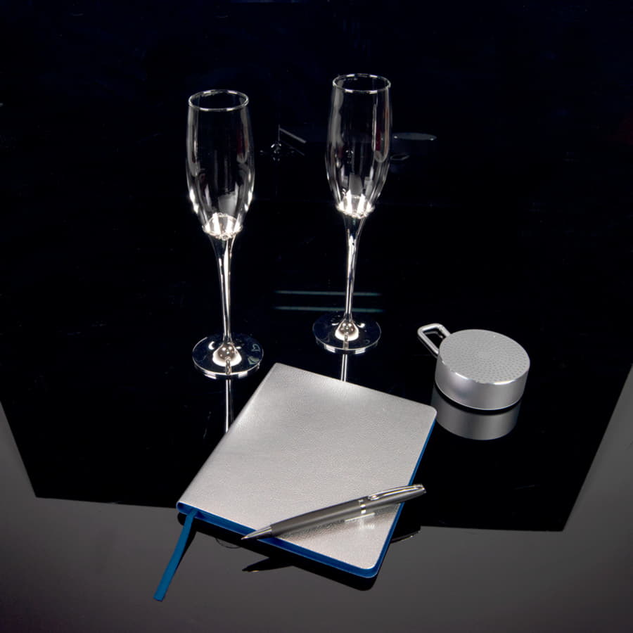 Бокалы для шампанского "Crystal" (2шт),  Размер: D=6,8см, Н=25,2смМатериал: стекло, посеребренный металл, лаковое покрытие