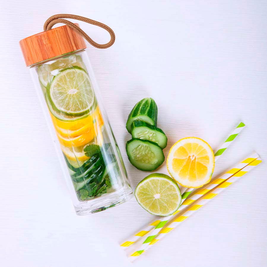 Стеклянная бутылка с навинчивающейся крышкой из бамбука. Стекло не впитывает запахи и дольше сохраняет свежесть воды, не окисляется и является самой безопасной тарой для хранения воды. На крышке предусмотрена текстильная петля для удобства в использовании. Продукт поставляется в индивидуальной дизайнерской упаковке. Объем - 420 мл.