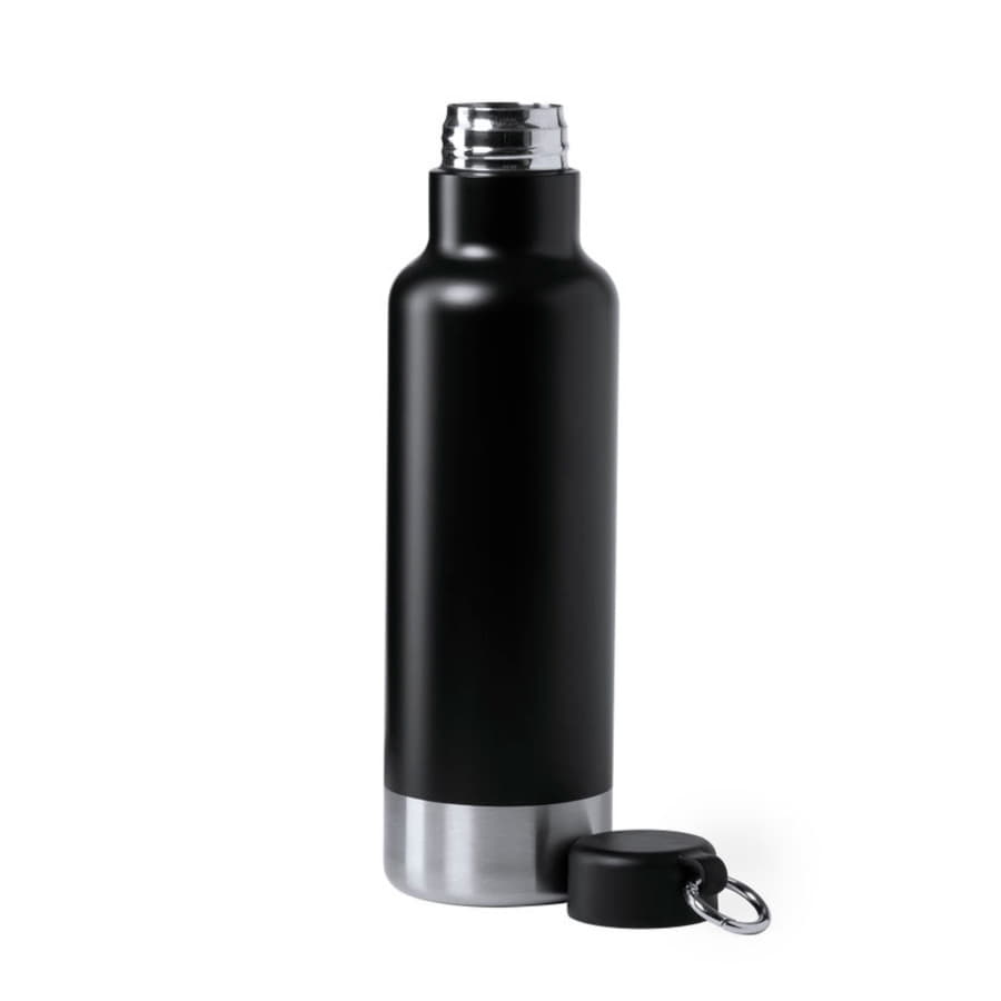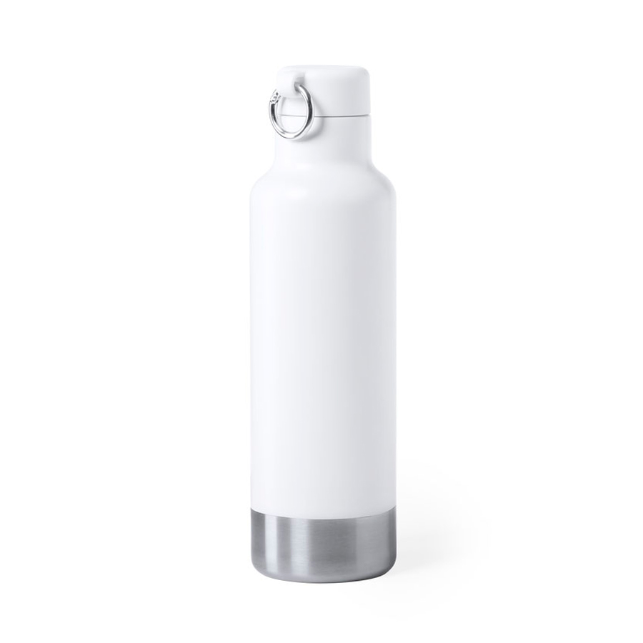 Бутылка для воды PERNAL высокого качества и большой емкости 750 мл  из нержавеющей стали, со свинчивающейся крышкой  и кольцом-карабином для переноски. Основание из элегантной нержавеющей стали. Доступна в элегантном белом и черном цветах. Представлена в индивидуальной  коробке привлекательного дизайна. Диаметр бутылки - 7 см, вес - 150 г.