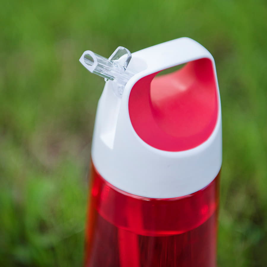 Бутылка с выдвигающейся трубочкой для питья и эргономичной крышкой для удобства переноски.