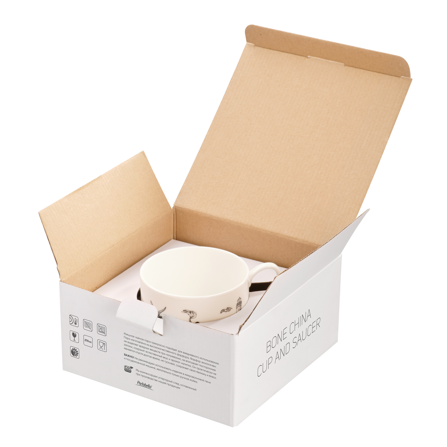 Простая по форме чайная пара «Mokko» изготовлена из костяного фарфора.