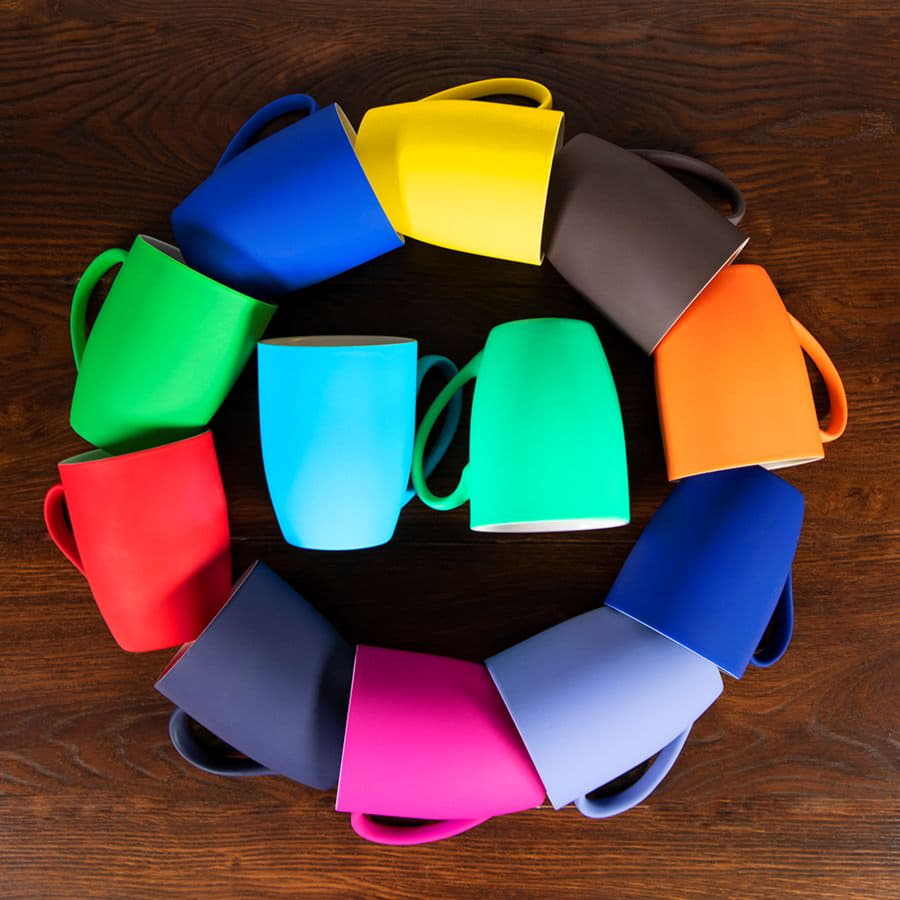 Фарфоровая кружка SWEET с мягким и тактильно приятным прорезиненным софт покрытием давно и прочно завоевала место на рынке бизнес-подарков. Секрет ее успеха – в популярной универсальной форме и очень широком ассортименте цветов в линейке.  А с гравировкой она смотрится просто великолепно – когда снимается верхний слой покрытия, лого выглядит ярко и объемно. Настоящее волшебство! Большая площадь поверхности позволяет нанести любую надпись, пожелание или цитату, так что не ограничивайтесь деловыми стандартами. Pantone 199C  Не рекомендуется мыть в посудомоечной машине