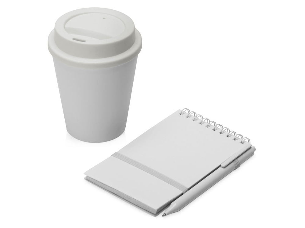 Набор с антибактериальным покрытием, в который входят самые нужные в офисе предметы: - стакан с крышкой, - блокнот, - ручка. За счет покрытия, в которое входят ионы серебра, уменьшается размножение бактерий на поверхности.