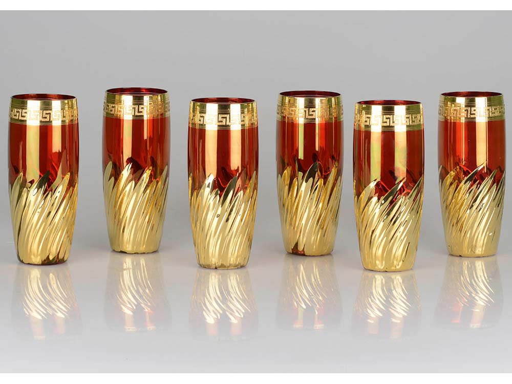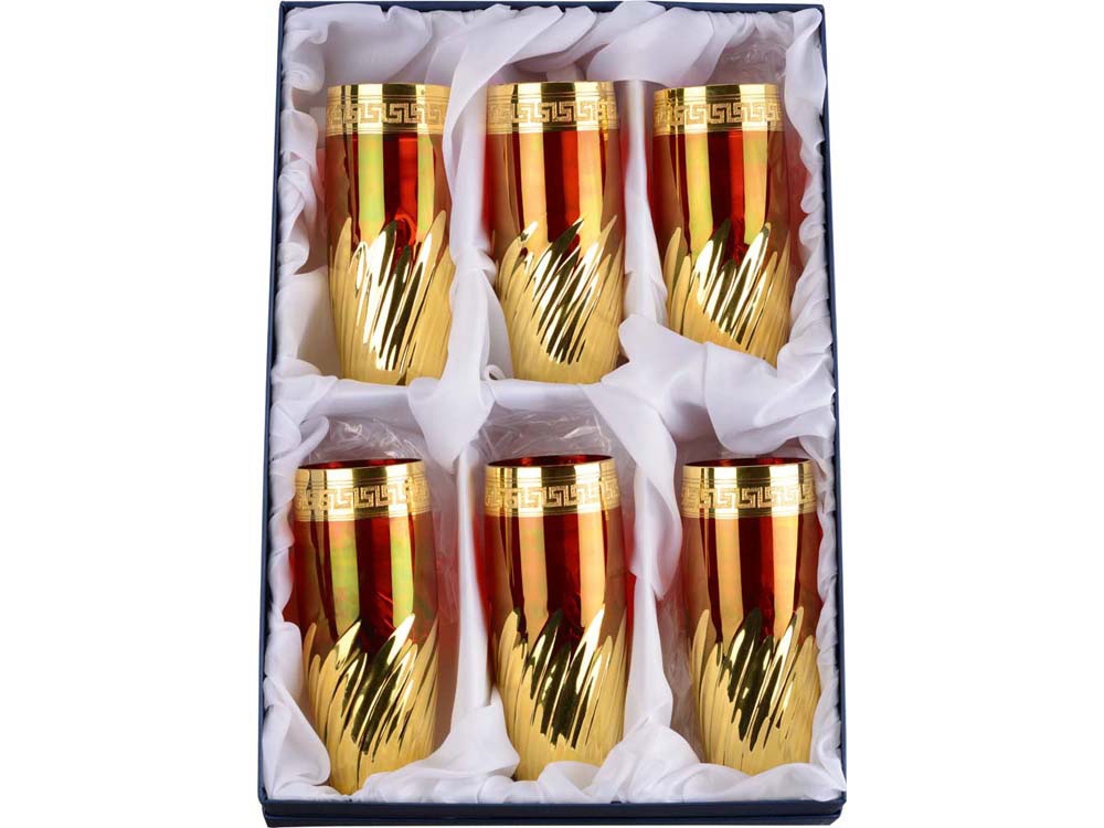 Яркий набор коктейльных стаканов рассчитан на 6 персон. Набор выполнен из цветного стекла и украшен золотистым декором. Набор позволит отметить торжество в кругу близких друзей и партнеров по бизнесу.