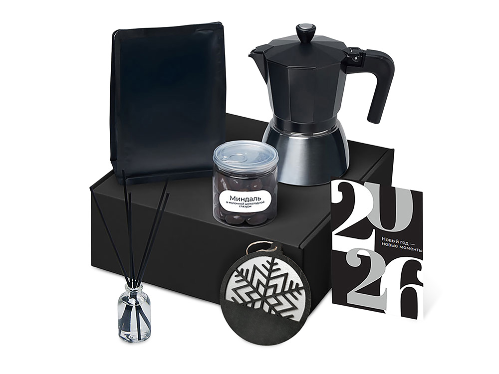 Новый год — новые моменты, которые хочется прожить по-настоящему. Вспомните детство, когда мы никуда не спешили, наслаждались каждым мгновением и делали то, что нам нравилось. Наборы серии Re:NY напоминают: важнее всего человек, а не его роль. Они дарят возможность замедлиться, отложить гаджеты и насладиться настоящим. Пусть новогоднее время станет паузой, наполненной тишиной, теплом и моментами, которые восстанавливают перед новым годом. Каждый набор — как мини-ритуал: согреться, замедлиться, почувствовать себя, поблагодарить и восстановиться после года, полного скорости, дедлайнов и шума. Это не о деловом спасибо — это о настоящем внимании. Это о том, чтобы сказать: Я вижу, сколько ты сделал. А теперь — время для тебя. Набор Re:Vive — о том, чтобы начать день с энергии и вдохновения. Заварите свежий, ароматный кофе в гейзерной кофеварке и наслаждайтесь вкусным миндалём в шоколаде. Диффузор с ароматом еловых шишек и хвои наполняет пространство ощущением зимнего леса, а каждый глоток превращается в маленький ритуал бодрости и радости. Этот набор помогает оживить утро, подарить себе тепло и приятные моменты в любое время дня.