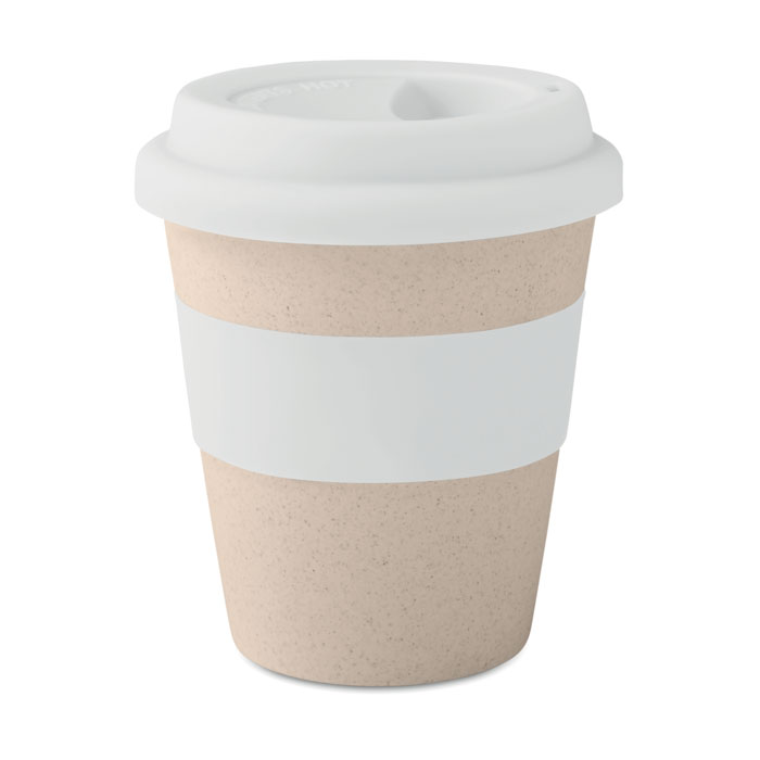 Термостакан одностенный из смеси 40% бамбукового волокна и 60% полипропилена. Емкость 350 мл. Крышка без закупоривающего механизма и манжет  - из силикона. Может становиться горячим в силу того, что является одностенчатым.  Можно  мыть в посудомоечной машине.