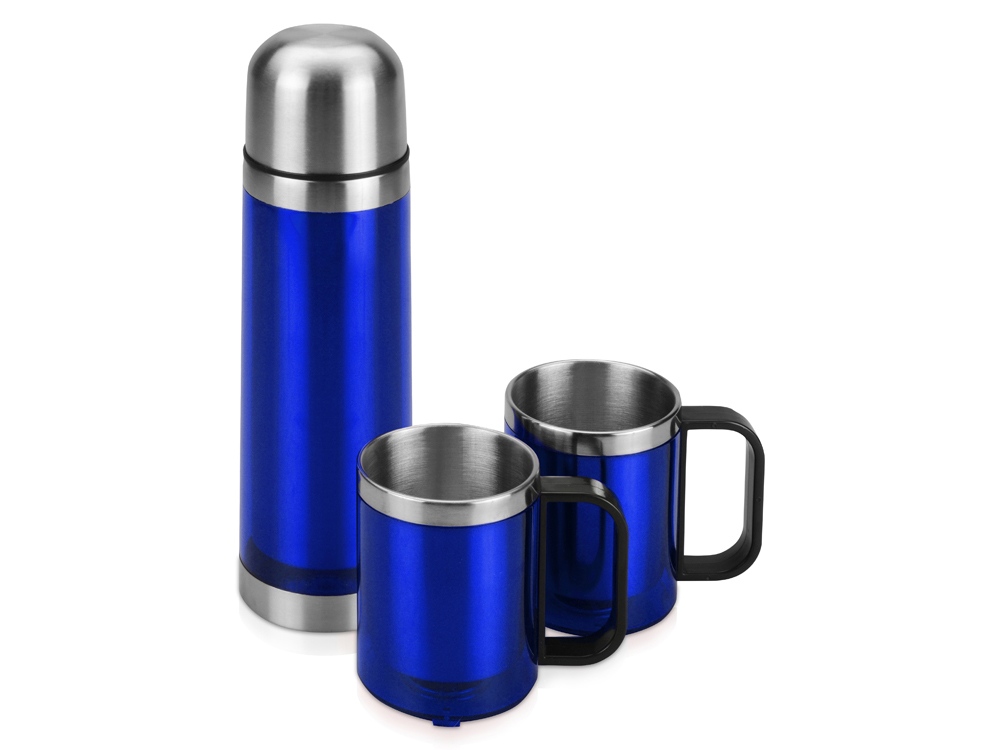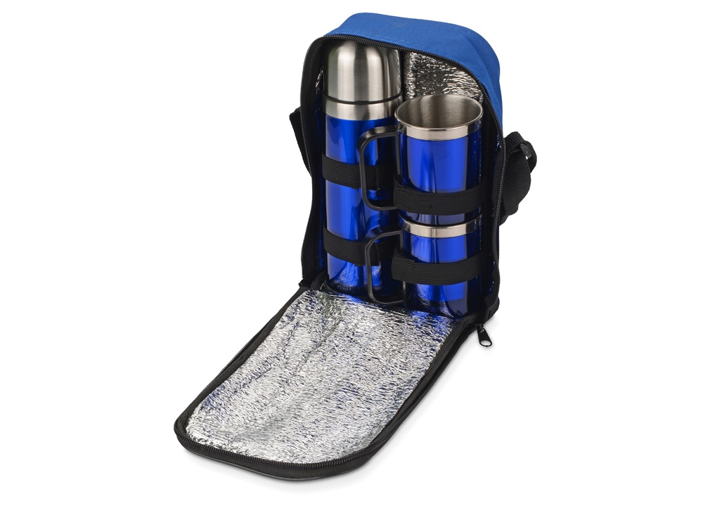 Набор состоит из термоса на 550 мл и двух кружек на 220 мл, которые складываются в удобную дорожную сумку с термоизоляцией. Термос поможет сохранить ваши напитки теплыми в течение 4 часов. Набор придется весьма кстати во время длительных прогулок, походов и даже отдыха на даче.