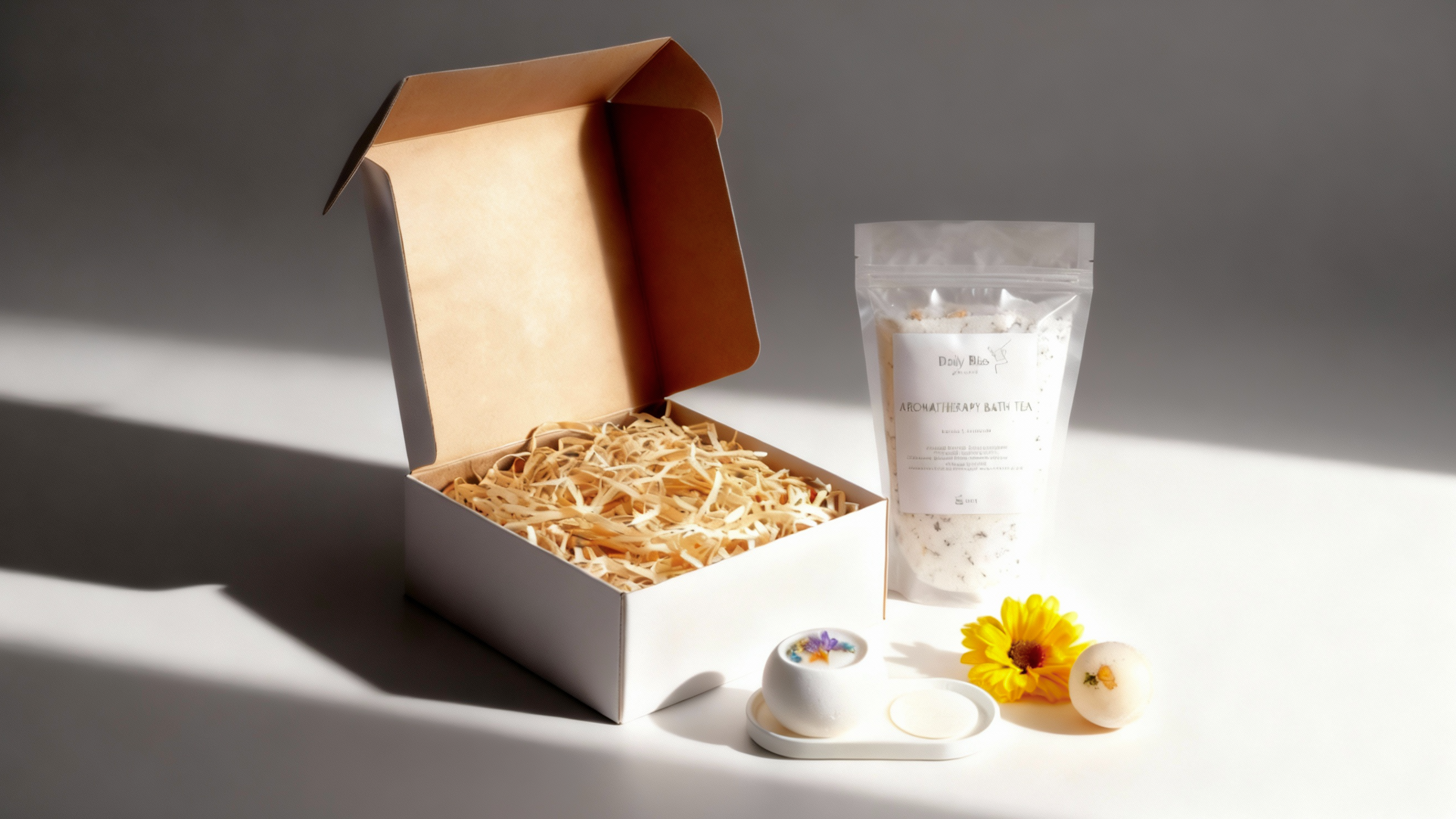 Набор для полного расслабления: свеча, бомбочка и чай для ванны.