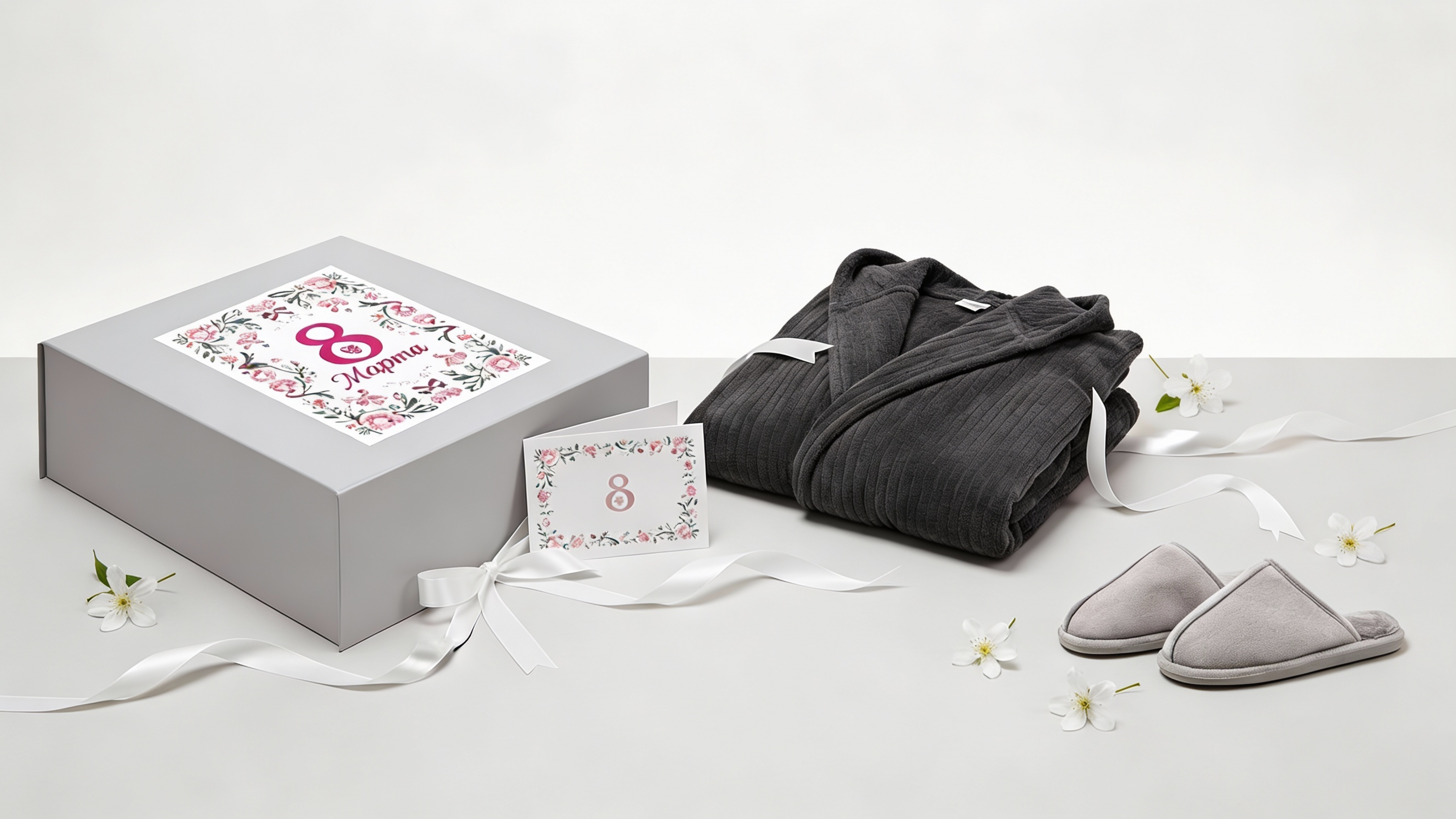 Уютный набор из флисового халата и тапочек.