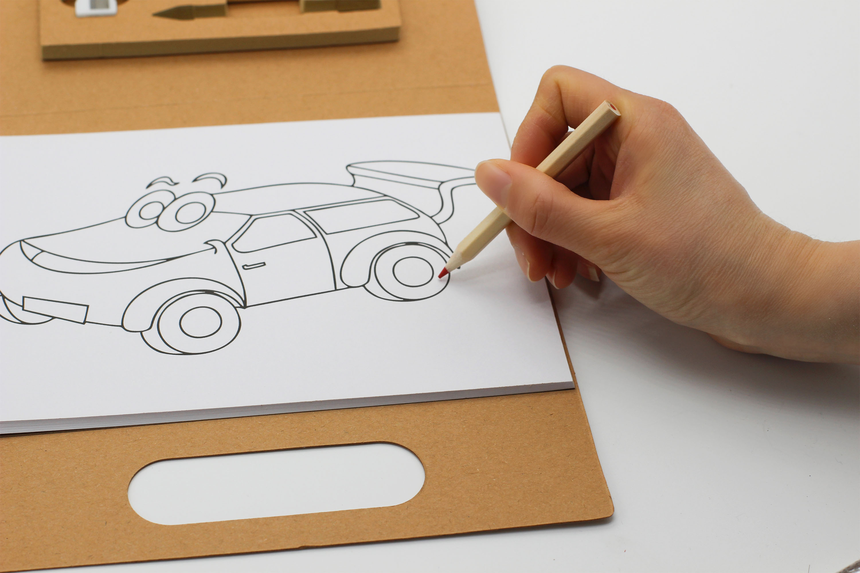 • Картонная папка позволяет удобно хранить все принадлежности и рисунки.