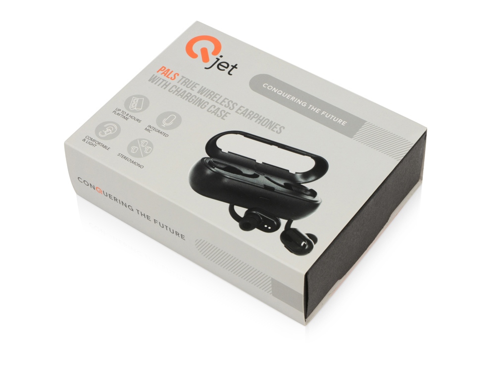 Беспроводные наушники Pals от Qjet - это современные технологии в компактной привлекательной форме. Наушники порадуют качественным объемным звучанием и легкой эргономичной формой, а благодаря зарядному кейсу суммарное время воспроизведения достигает 8 часов. Зарядный чехол-повербанк легко помещается в карман куртки, сумки или рюкзака. Поддерживают режим hands-free. Управление звонками и воспроизведением музыки осуществляется через многофункциональную кнопку на наушнике. Каждый из 2 наушников может быть декорирован любым изображением с помощью заливки смолой. В комплекте 2 наушника, зарядный кейс, набор сменных амбушюр, мешочек, зарядный кабель, подробная инструкция и 2 стикера-накладки на случай ,если заливка смолой не требуется. Основные характеристики: — Качественное звучание до 8 ч. — Легкие и комфортные наушники, портативный зарядный кейс. — Hands free, моно и стерео режимы. —